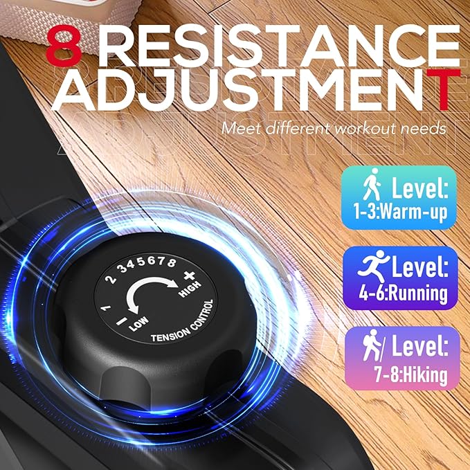 - 8 Levels of Magnetic Resistance Adjustment- Recumbent exercise bike with 8 magnets.Muting technology of dual reluctance system for recumbent bike to give you a quieter exercise experience.