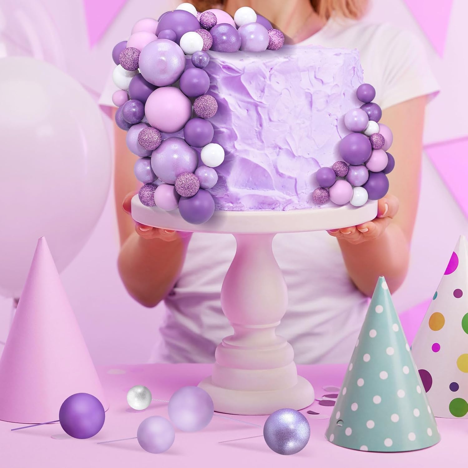 108 Pcs Balls Cake Topper DIY Cupcake Insert Foam Balloons for Cake Baking Wedding Anniversary Birthday Decoration(Assorted Purple,Multi Sizes)