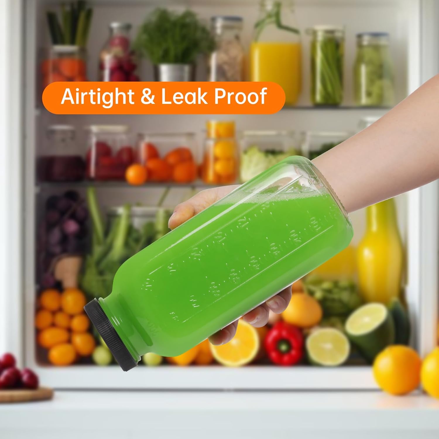 STARSIDE 32 oz Glass Juice Bottles with Lids 2 Pack - Square Reusable Drinking Jars for Juicing, Milk, Kombucha - Includes 1 Bottle Brush, 6 Colored Labels