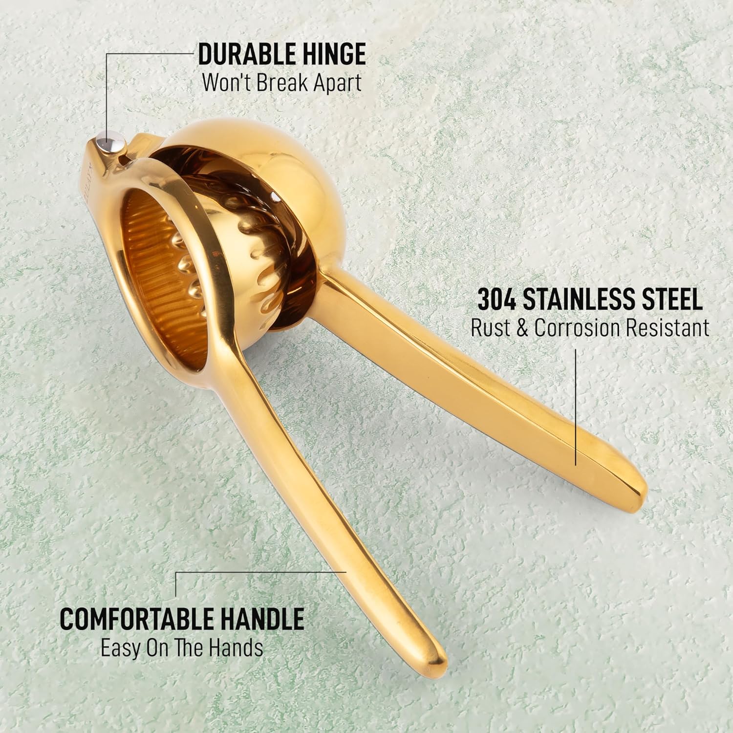 Zulay Kitchen Lemon Squeezer Stainless Steel - Premium Quality, Heavy Duty Solid Metal Squeezer Bowl - Large Manual Citrus Press Juicer and Lime Squeezer Stainless Steel - Gold