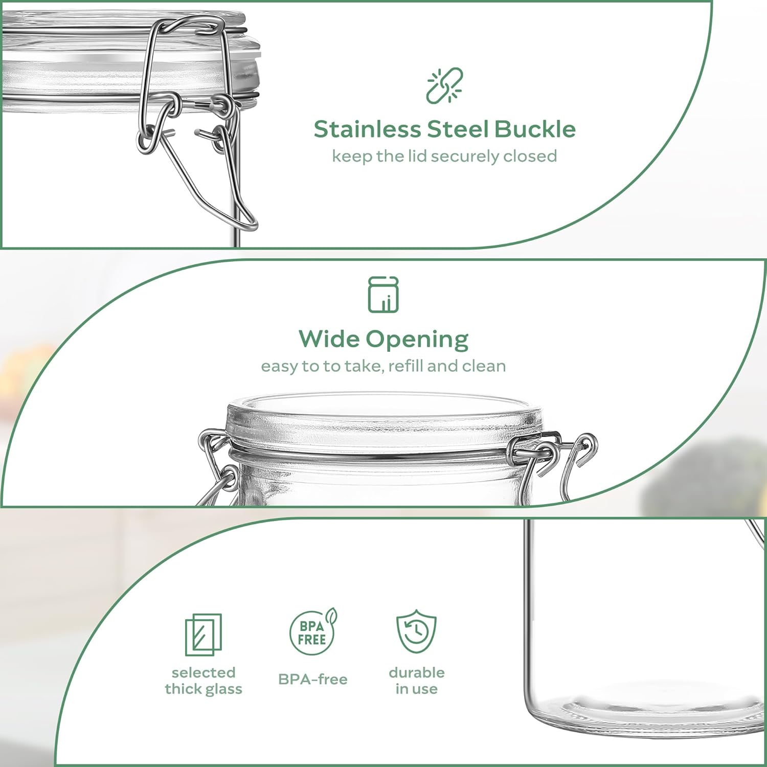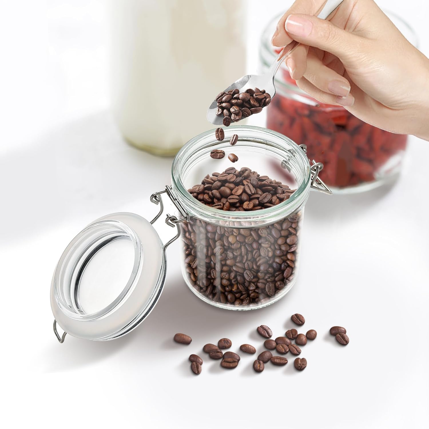 - Wide Applications: Our airtight storage jars are very versatile and can be used not only to store a wide variety of foods such as pasta, coffee beans, cookies, candy and spices, but also to pickle your own fruits and vegetables