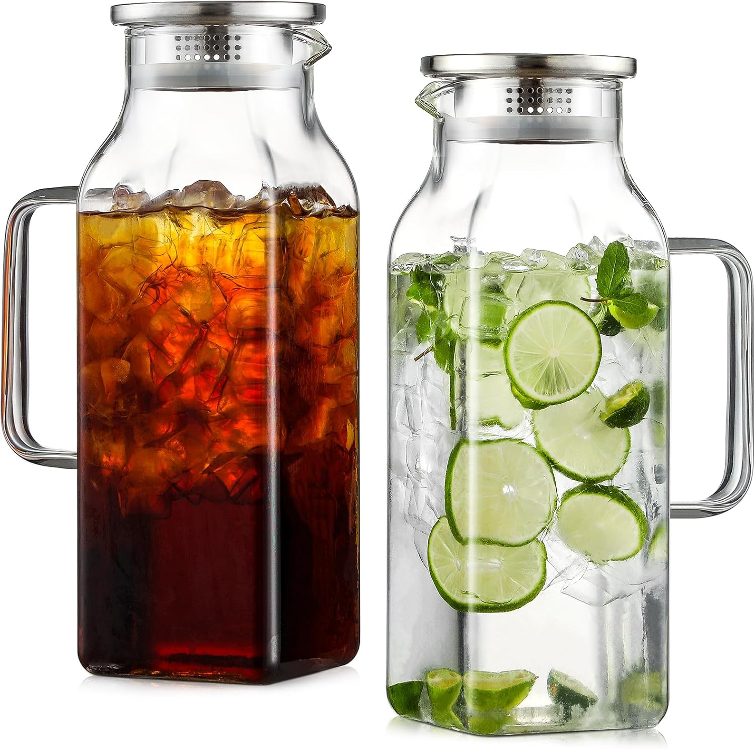 - Large Capacity: The square glass pitcher boasts a substantial 68oz (2-liter/0.53 gallon) capacity, holding approximately 18 cups of your favorite juice. Perfect for serving large gatherings or for keeping your family hydrated throughout the day!