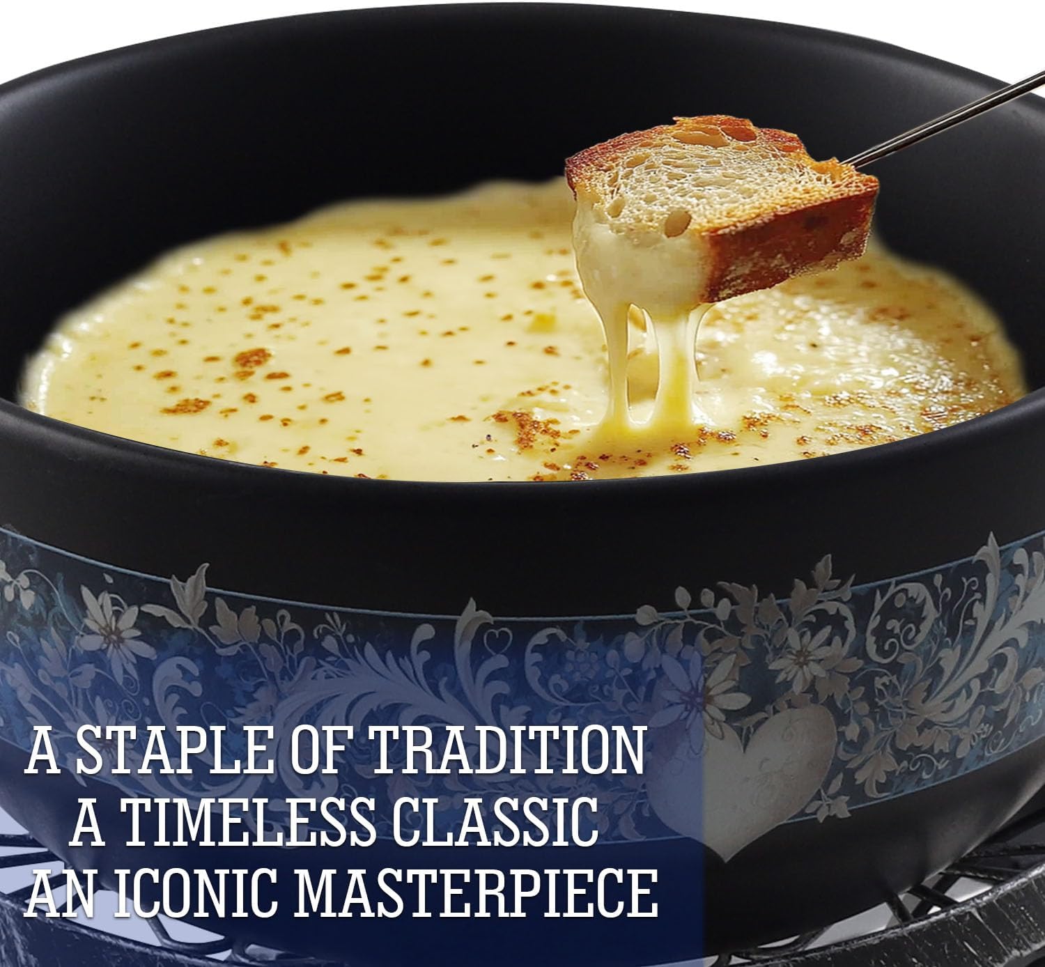 - IDEAL FONDUE with FAMILY - Perfect for gatherings, date nights, or family celebrations, this fondue pot combines style and functionality to create a delightful culinary adventure. Enjoy perfectly melted cheese, chocolate, broth, or oil fondue with your favorite fixings. Perfect for sharing, this set comes with six color-coded fondue forks so you know which is yours.