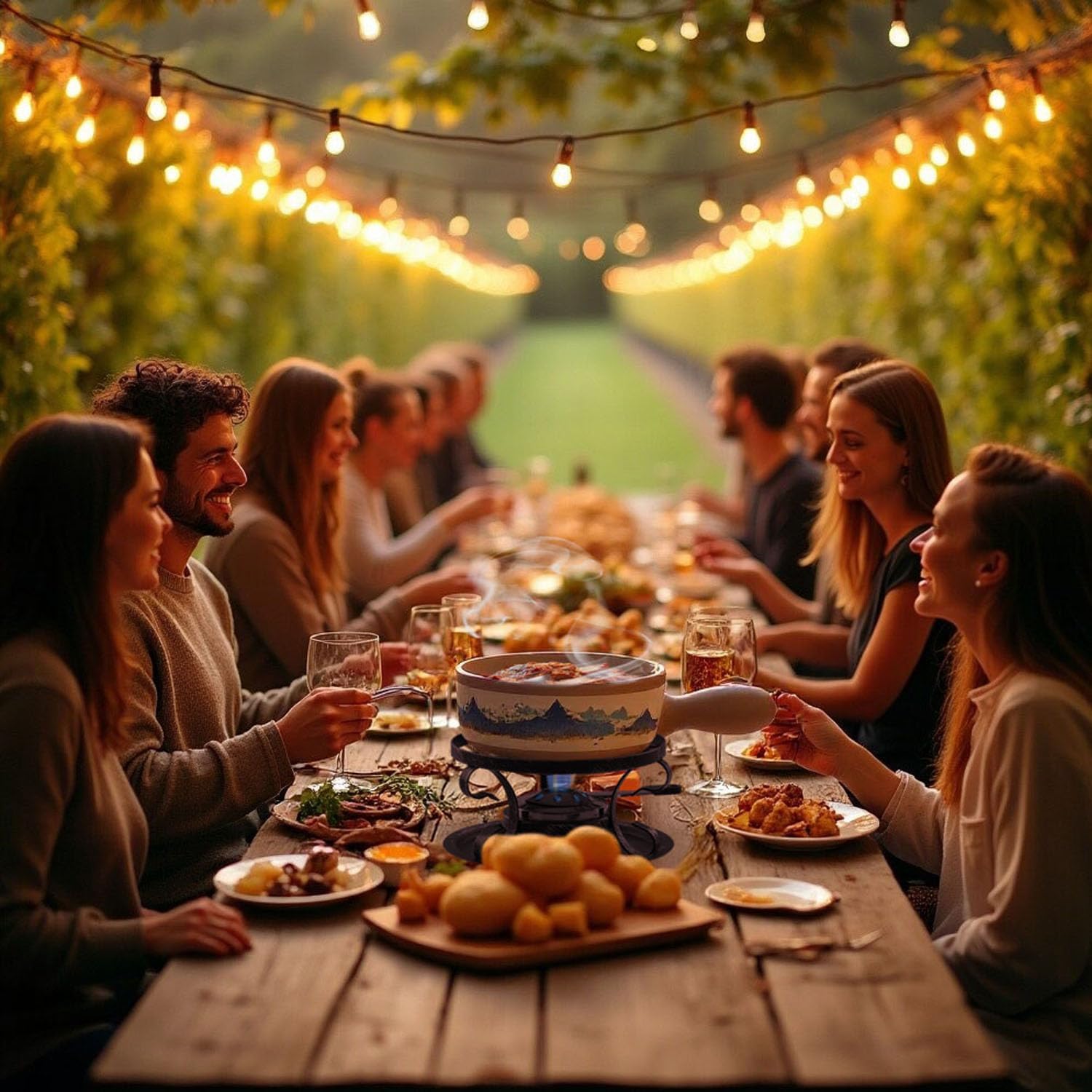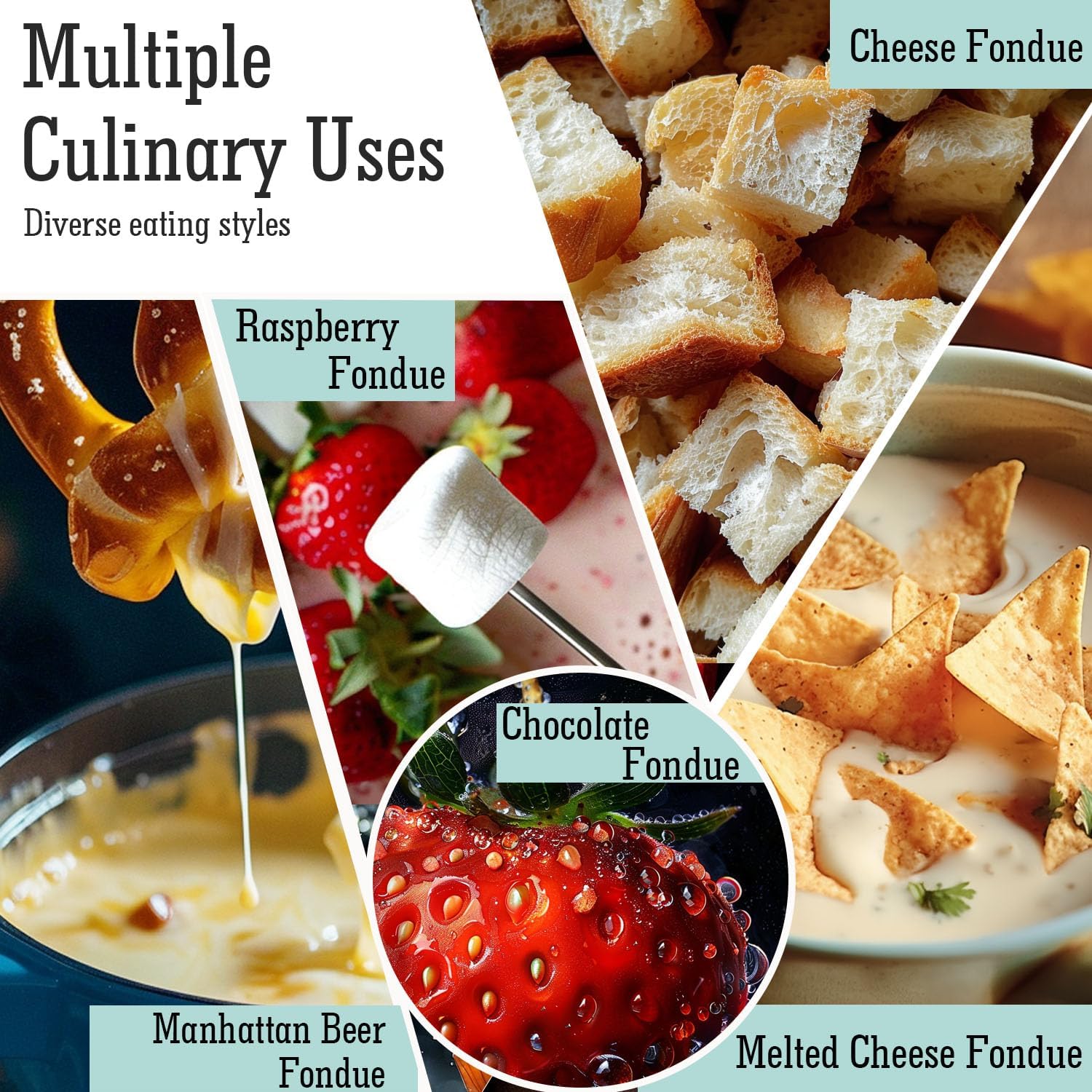 - IDEAL FONDUE with FAMILY - Perfect for gatherings, date nights, or family celebrations, this fondue pot combines style and functionality to create a delightful culinary adventure. Enjoy perfectly melted cheese, chocolate, broth, or oil fondue with your favorite fixings. Perfect for sharing, this set comes with six color-coded fondue forks so you know which is yours.