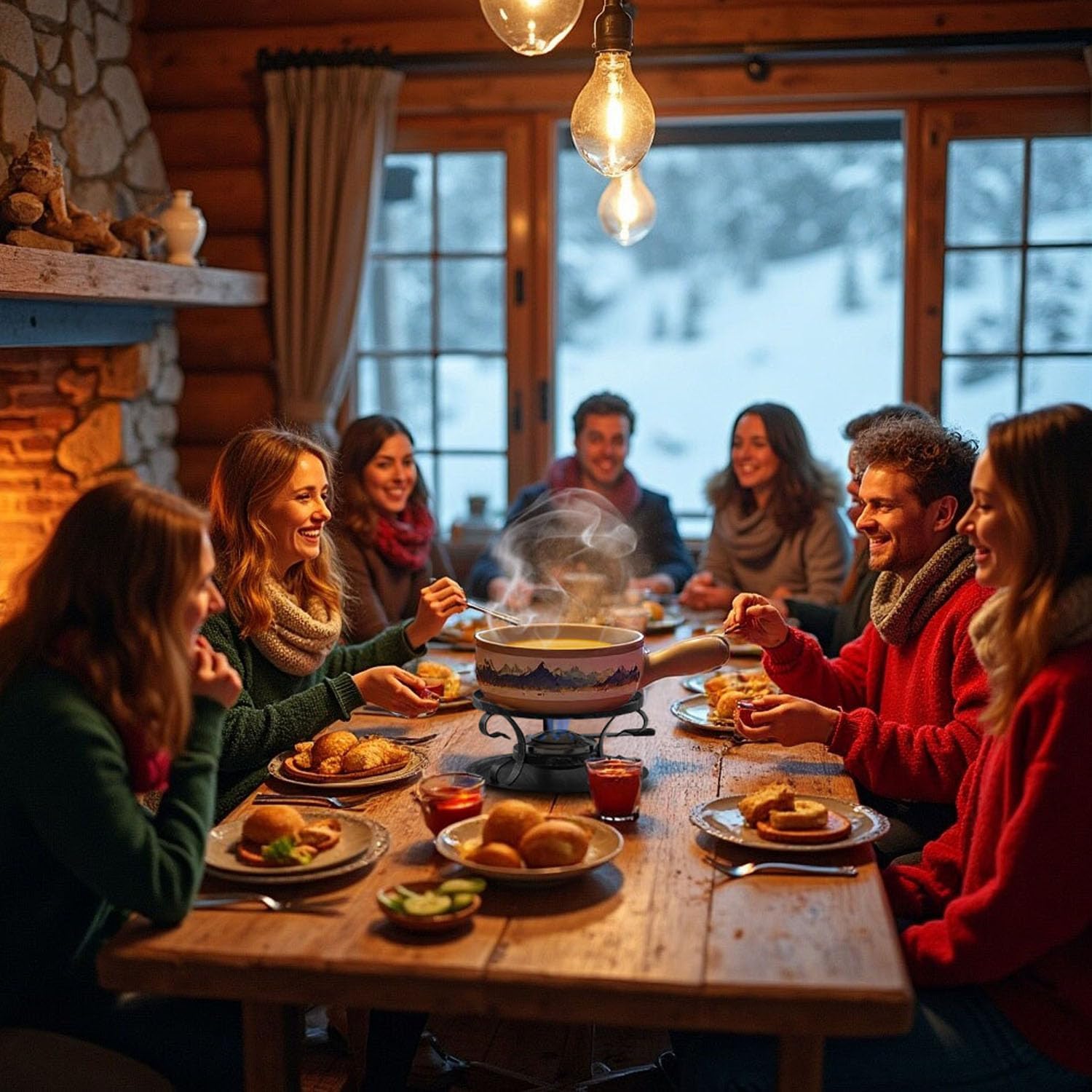 Artestia Swiss Fondue Set for Party - 2L Large Capacity Cheese Fondue Pot Melting Chocolate, Ceramic Fondue Pot, 6 Fondue Forks, Christmas, Wedding Gifts (Rockies Reverie)