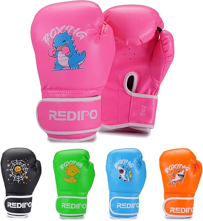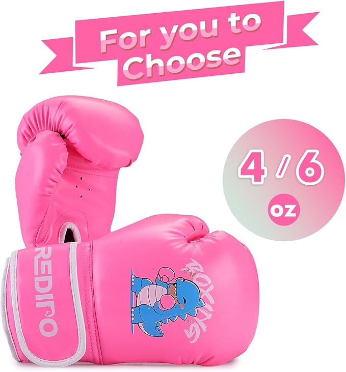 - 【ERGONOMIC DESIGN】-- Ergonomic design with extra-thick protective padding on the knuckles provide ultimate safety in every punch. Redipo 4 & 6 OZ boxing fighting gloves are suitable for kids ages 3-9.