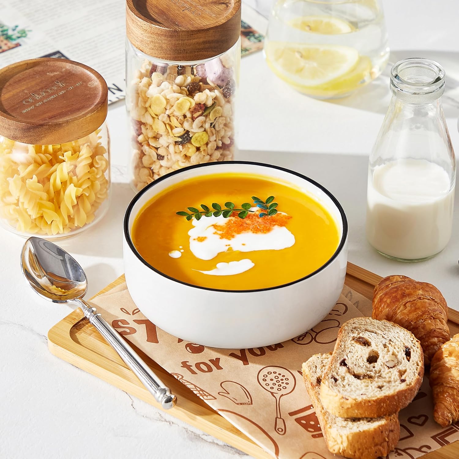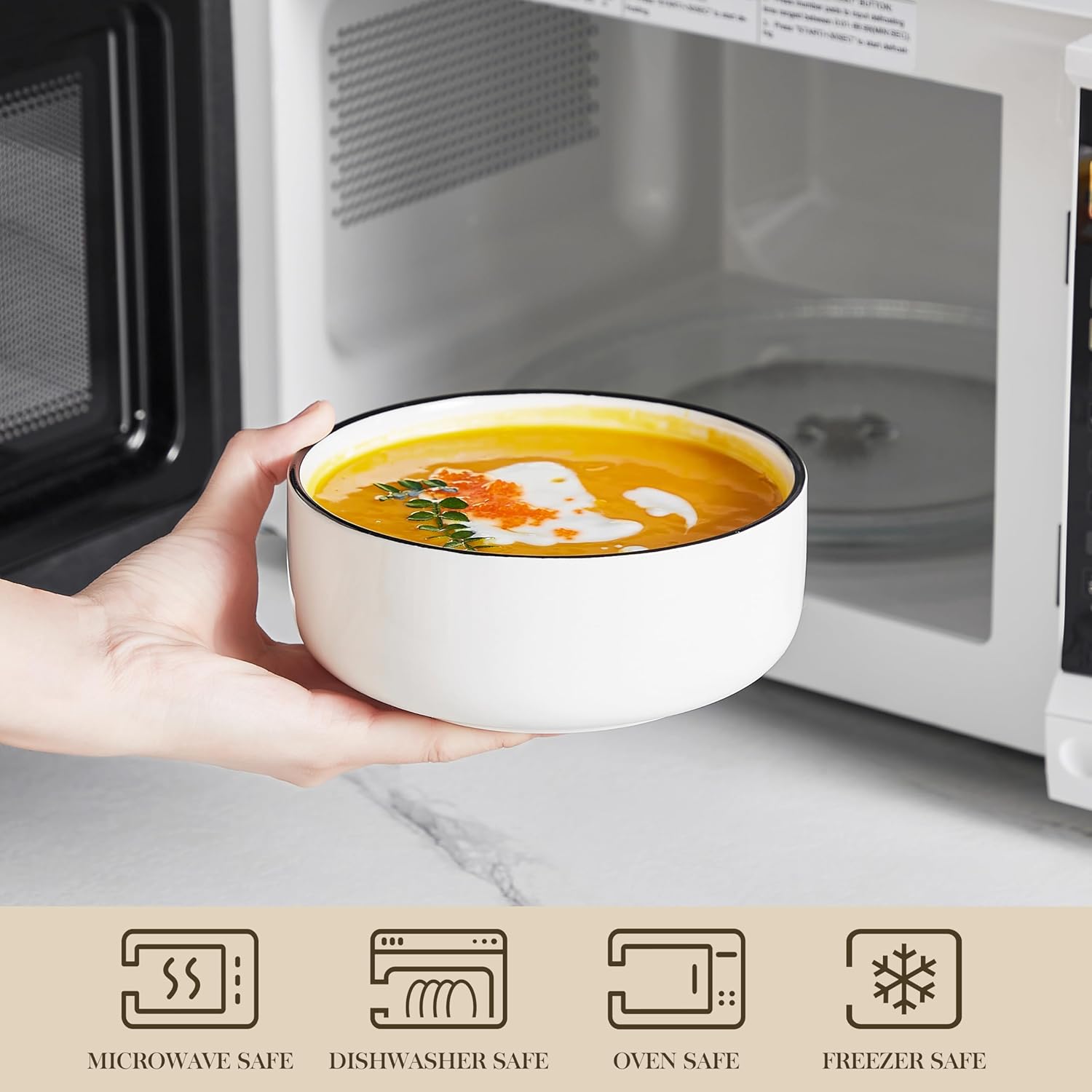 - 【SUPERIOR QUALITY】Compared to the 2000°F firing temperature of ordinary ceramics, MALACASA soup bowls use 2912°F high temperature firing to enhance the hardness and durability of the bowls. Safe to use in microwave, oven, dishwasher