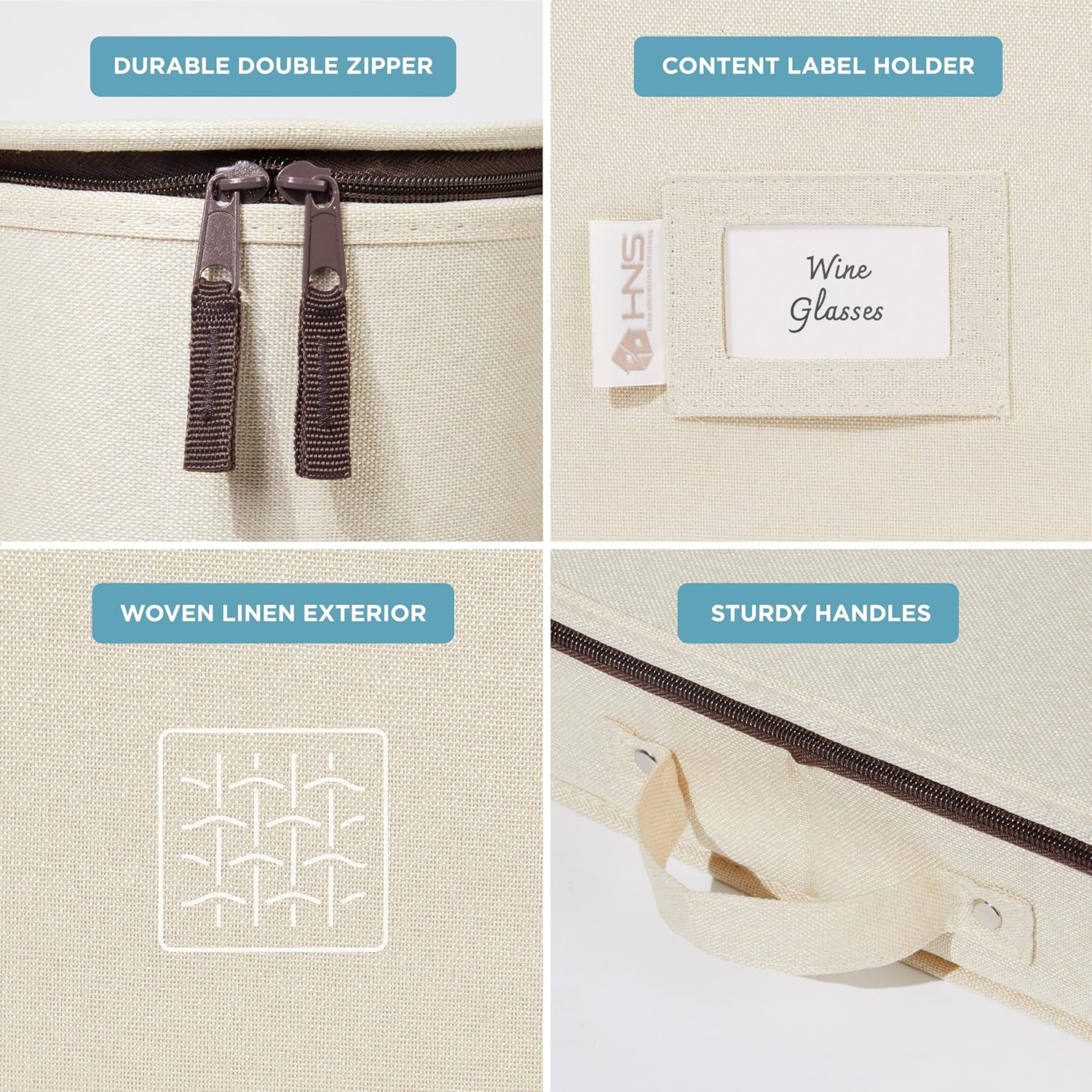 Hard Shell China Storage Containers 8-Piece Set Moving Boxes for Dinnerware, Glasses, Plates, Mugs and Saucers Sturdy Dish Organizer with Dividers for Seasonal Storage - Service for 12 - Beige