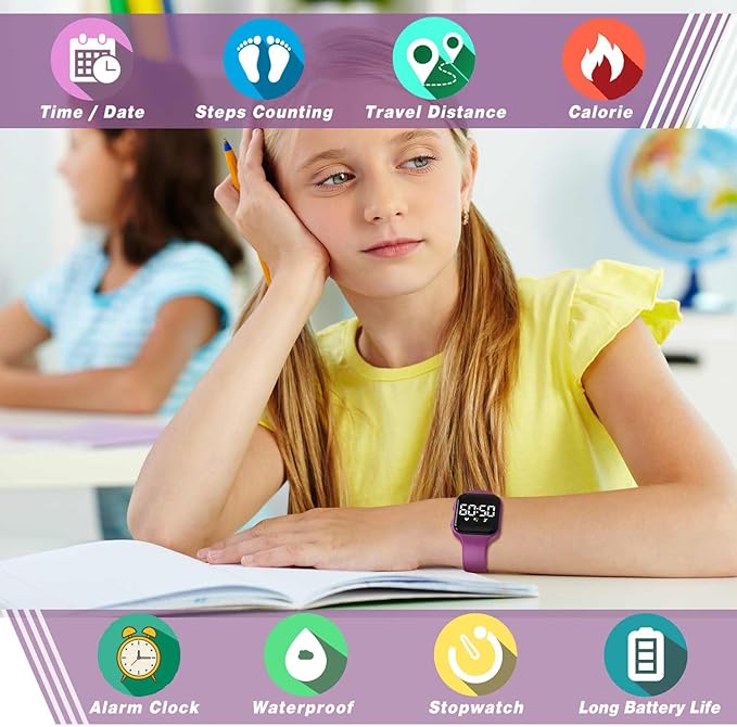 Kids Fitness Tracker,Digital Pedometer Watch,Sport Watch, Steps Counter, Waterproof, Alarm Clock for Boys Grils Kids Children (Purple)