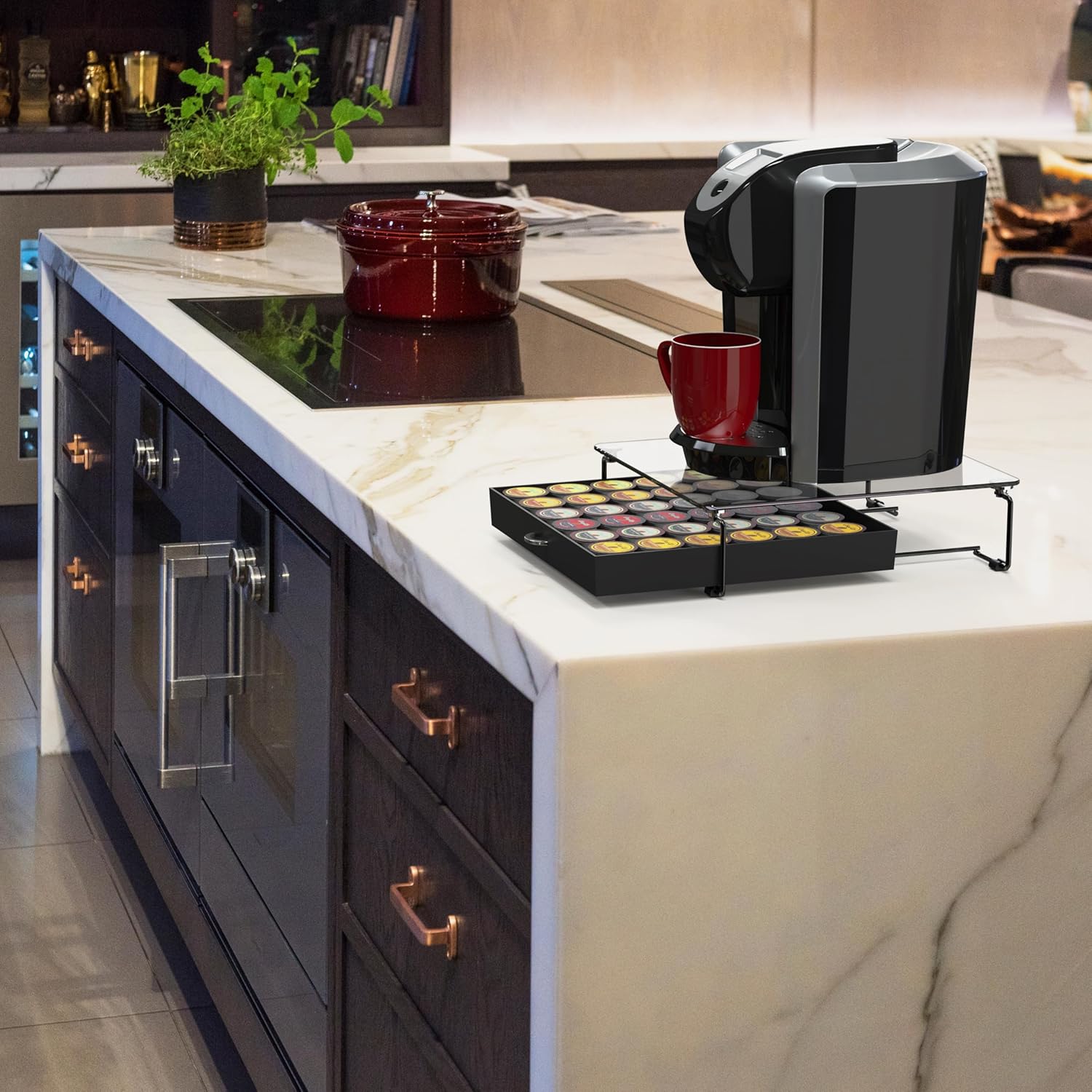 - Tempered Glass Surface: Offers a clear view of the coffee pods from the top without opening the drawer, adding a touch of sophistication.