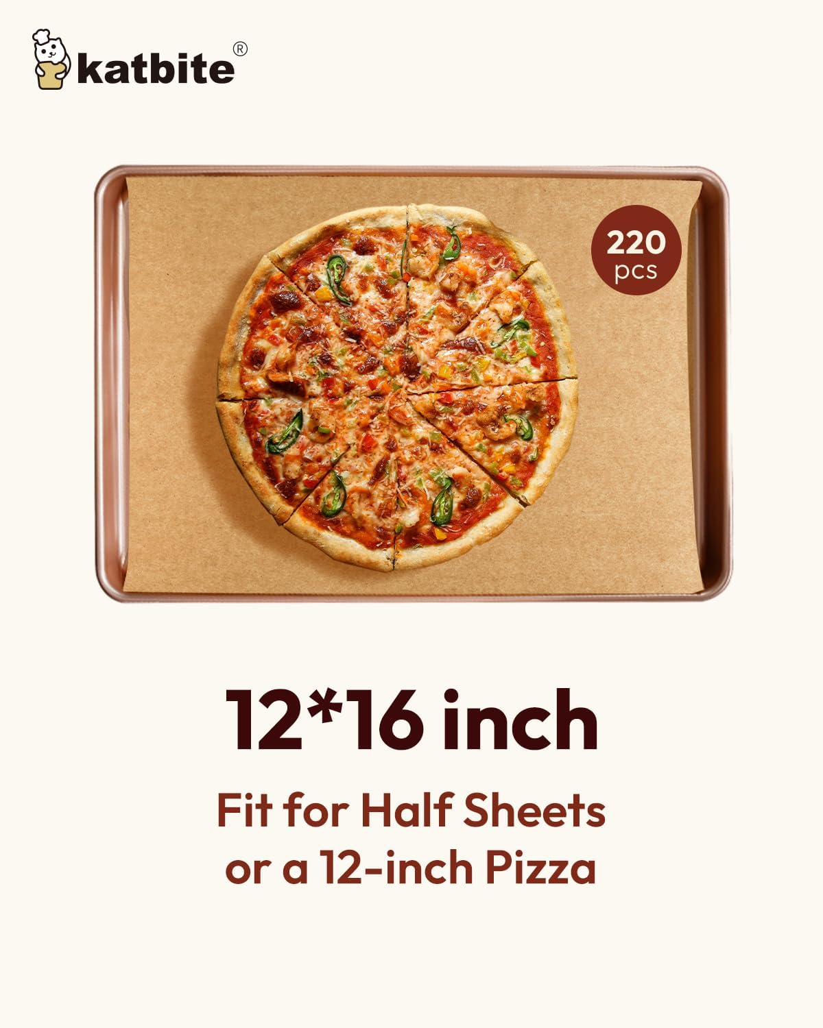 Katbite 220 Pcs Parchment Paper Sheets, 12x16 Inches Unbleached Baking Paper Non-Stick for Gently Baking, Pre-cut Parchment Paper Suitable for Baking, Cooking,Air Fryer [Balanced Series]