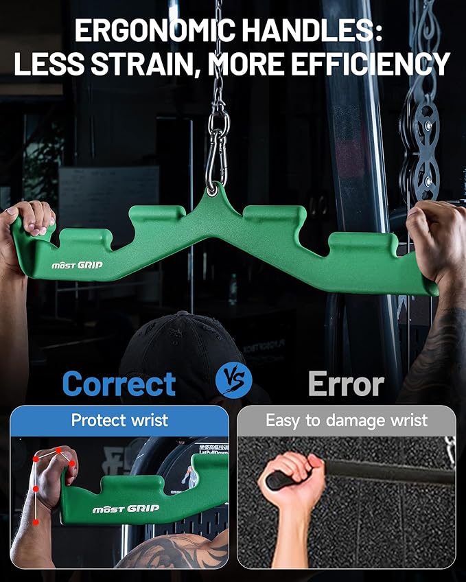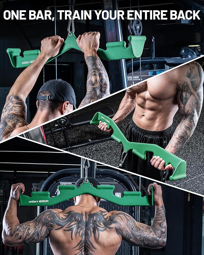 - 💪 Versatile 3-Grip Design for Total Back Development: Maximize your back workouts with the MOST GRIP Lat Pull Down Bar (Registration in process: US 29/959,858). With three grip positions—wide, narrow, and neutral—you can effectively target the lats, rhomboids, and teres for a complete upper body workout. Say goodbye to boring routines! This bar enhances back, biceps, and triceps, giving you a versatile workout in one tool.