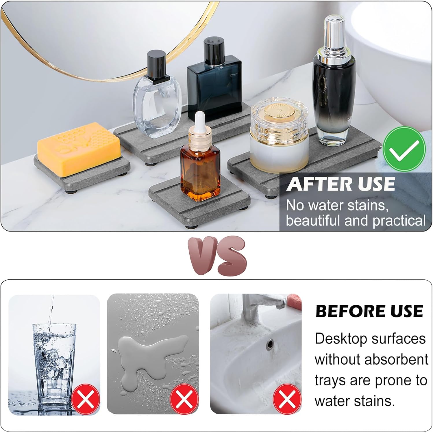 4PCS Stone Drying Trays for Bathroom Sink and Kitchen Counter - Water Absorbing Stone Tray with Diatomaceous Earth, Soap Dish and Coaster