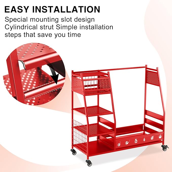 - Easy Installation: We have simplified the parts and installation steps of the golf garage storage stand, and comes with detailed installation instructions (in the package) and an installation video (on the listing details page), which makes it possible for even a novice to assemble it in less than 25 minutes. In addition, if you have any problems after opening the package or during the installation, you can tell us anytime, we will be happy to help you solve the problem