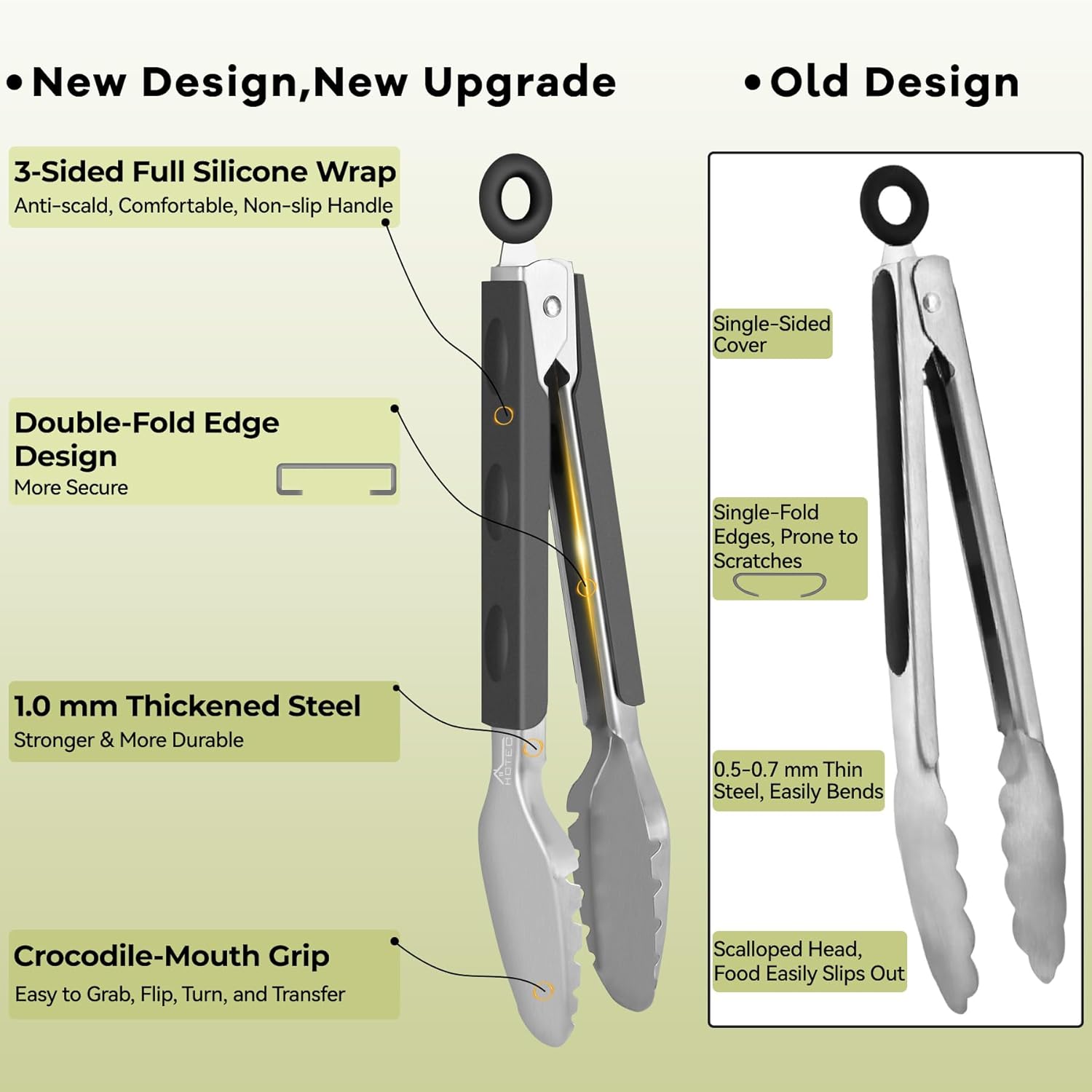 - Crocodile-Mouth Design for Better Grip: The head of the grill tongs is thickened stainless steel with a unique alligator mouth design for precision control and better handling of food. Easy to grab, flip, turn, transfer. The metal tong head is super heat resistant. Easy to rinse, dishwasher safe.