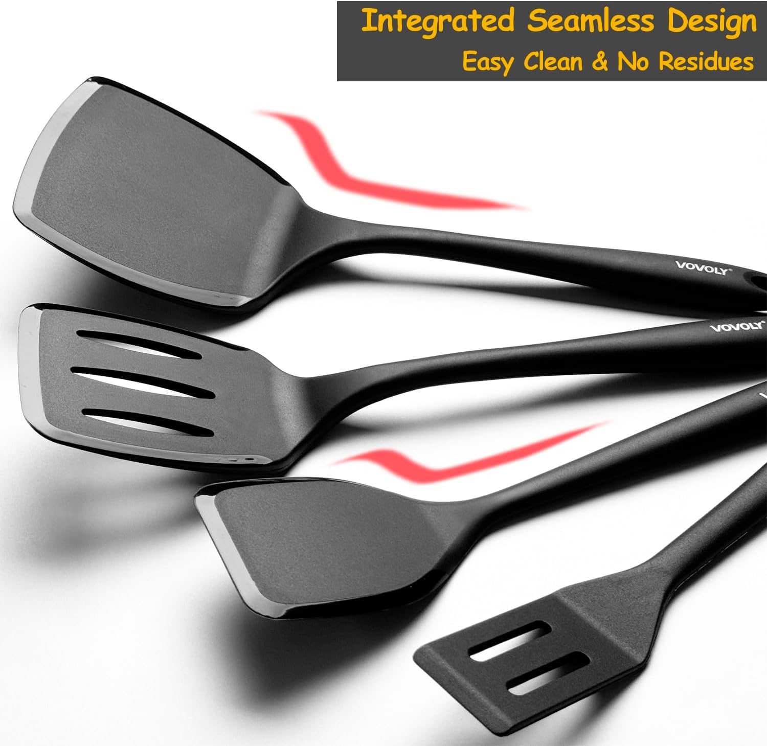 Silicone Spatula Set, 600°F Heat Resistant Silicone Spatula Turner Flipper for Cooking, Non Stick and Non Scratch Kitchen Utensils for Eggs & Pancakes, 4 Pack, Black