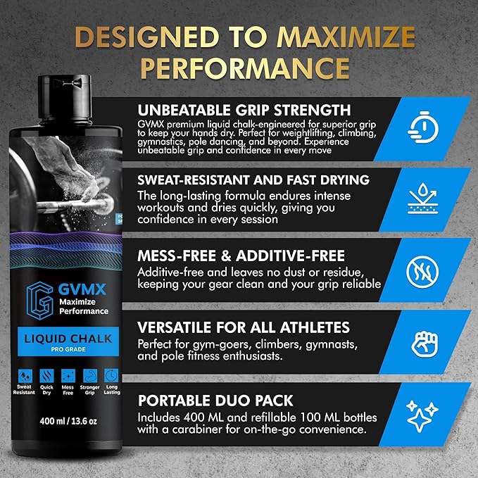 • ๐—”๐—ฑ๐—ฑ๐—ถ๐˜๐—ถ๐˜ƒ๐—ฒ-๐—™๐—ฟ๐—ฒ๐—ฒ ๐˜„๐—ถ๐˜๐—ต ๐—ก๐—ผ ๐—ฅ๐—ฒ๐˜€๐—ถ๐—ฑ๐˜‚๐—ฒ: GVMX hand chalk is no ordinary chalk powder. Nor is our workout chalk anything like other brands of liquid chalk gym enthusiasts use. Besides being additive-free, it leaves no chalk marks on your phone or sport equipment.