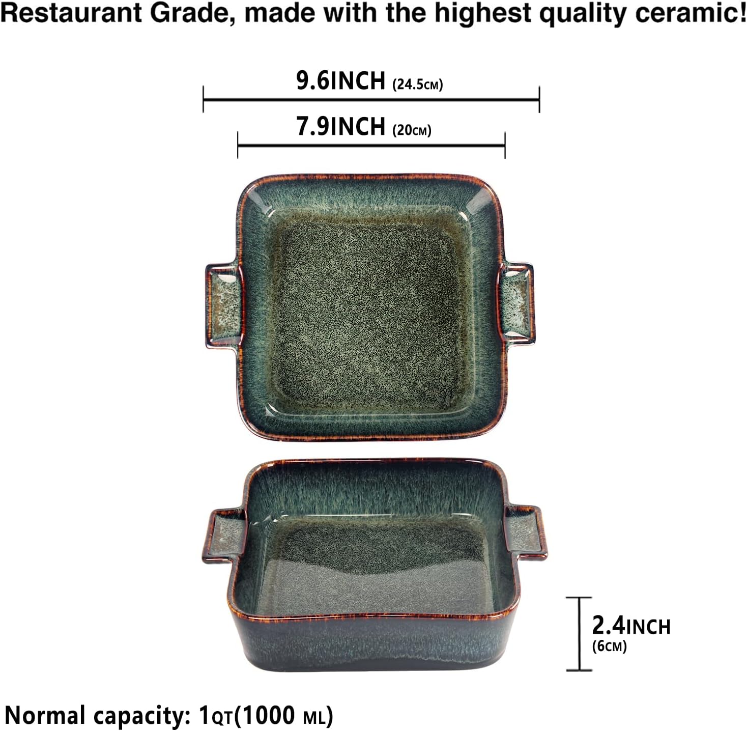 Ceramic Casserole Baking Dish - 1 Quarts Baking Dish for Oven, Lasagna Pans, Oven Safe Durable Bakeware for Kitchen Home Decor, Banquet and Dinner, Square 2 pieces 7.5 x 7.5 Inch