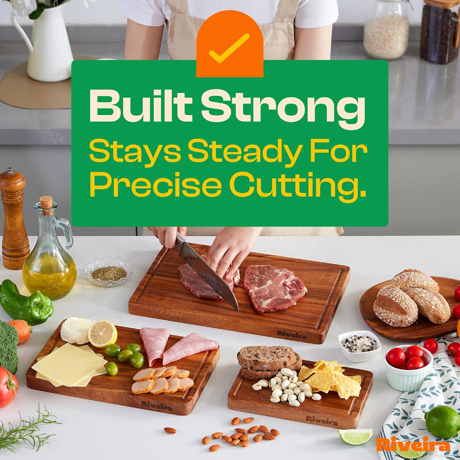 - Handle Everything with Confidence — The built-in handle holds of the walnut cutting boards are designed for handling everything with confidence and easy maneuvering. Pre-oiled and ready for immediate bewilderment, this wooden chopping board is not just convenient for the kitchen mess but has a unique design to maintain, ensuring a performance that is both comfortable and clean for chopping boards for kitchen. Riviera non toxic cutting boards for kitchen will be perfect in your kitchen.