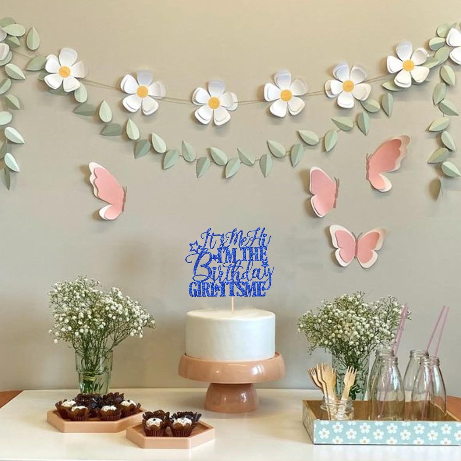 1 PCS It's Me Hi I'm the Birthday Girl It's Me Cake Topper Glitter Go Shawty It's Your Birthday Cake Pick for Funny Hot Pop Music Singer Theme Girls Birthday Party Cake Decorations Supplies Blue