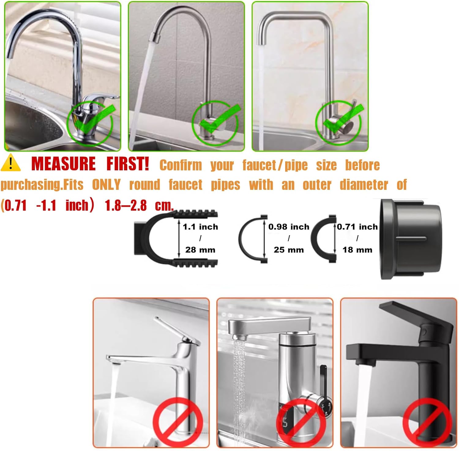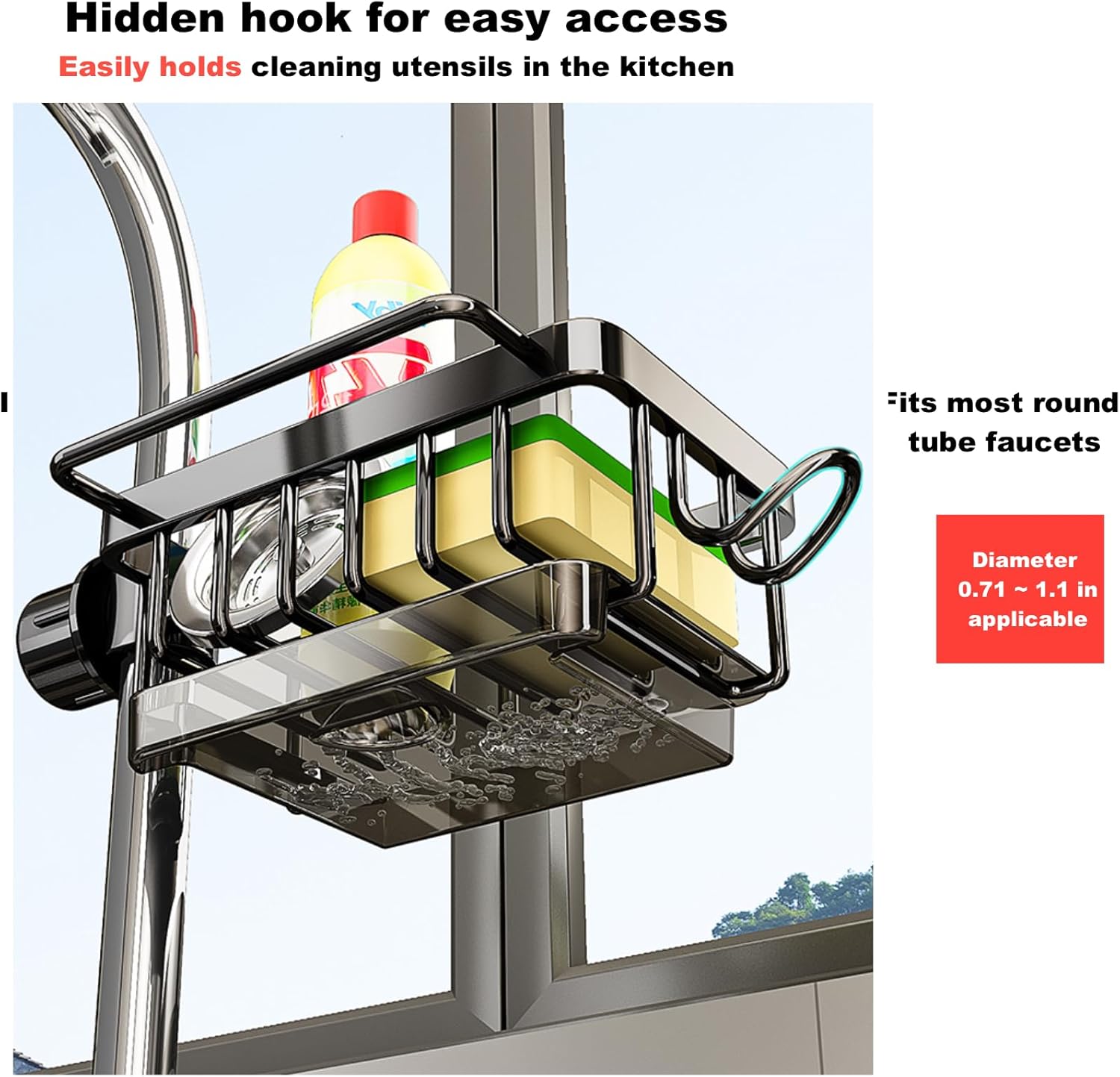 - 【Rustproof and durable materia】Our kitchen sink organizer rack, which is waterproof, rust-proof, fingerprint-proof, solid and firm, and has high load-bearing capacity,crafted from premium space aluminum, offers optimal organization capabilities thanks to its robust load-bearing capacity and stylish design. Serving as a reliable assistant for your organization needs, it facilitates quick drying of your daily essentials.【⚠️Note:This kitchen sponge holder is only suitable for round faucets(pipes of 18-28 mm(0.7'' - 1.1'') outer diameter,Always measure your faucet/pipe dimensions before purchasing), not for square faucets.】