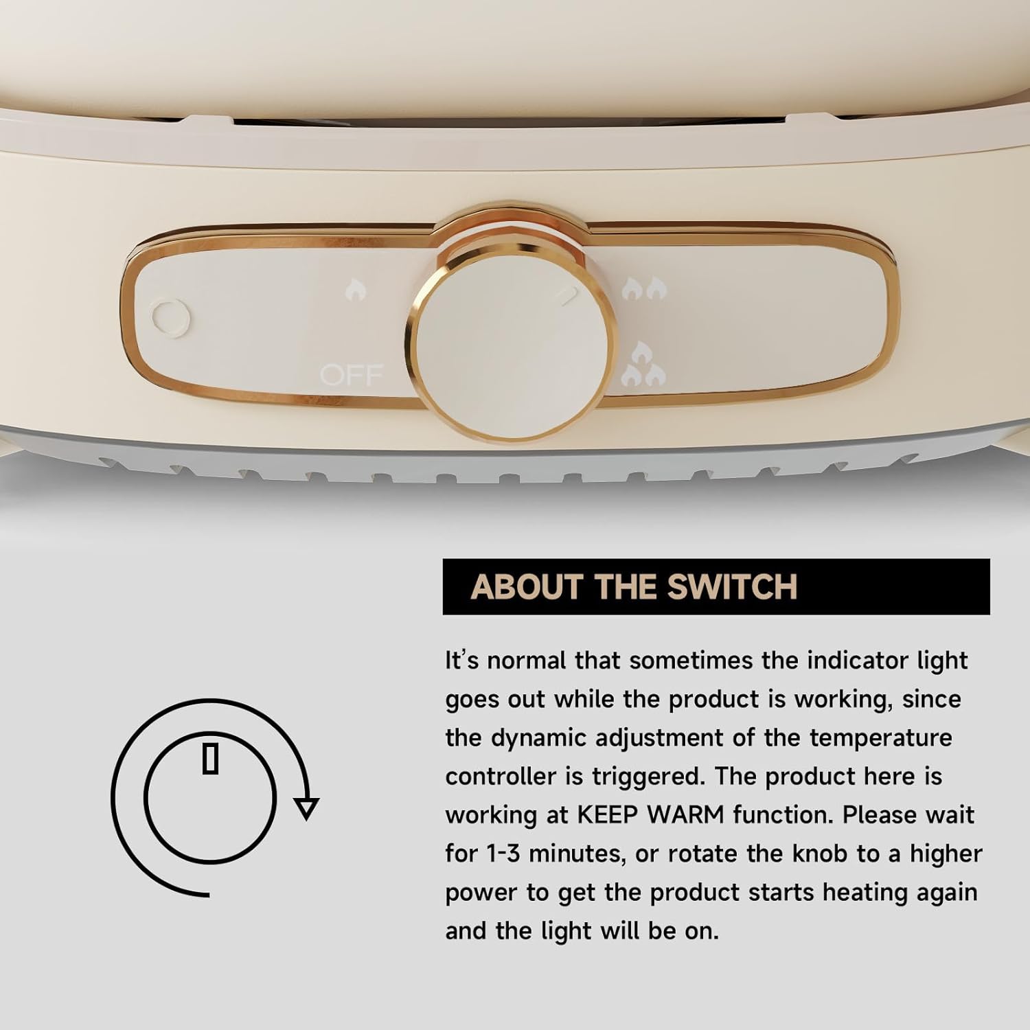 - Multi-Power Adjustment - In addition to its hotpot functionality, the divided electric pot boasts a three-gear adjustment feature that lets you simmer, slow-cook, stir-fry, and steam using different power settings. With an adjustable power control that goes up to 1500W and a double heating tube, this electric cooker heats rapidly, efficiently, and evenly.