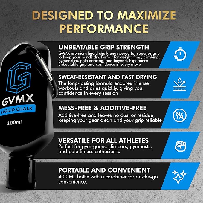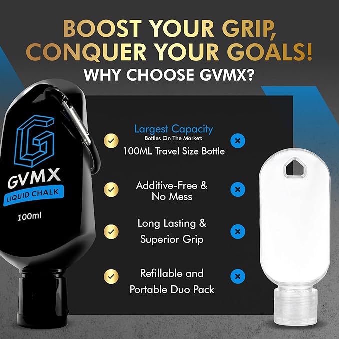- ๐๐ฑ๐ฑ๐ถ๐๐ถ๐๐ฒ-๐๐ฟ๐ฒ๐ฒ ๐๐ถ๐๐ต ๐ก๐ผ ๐ฅ๐ฒ๐๐ถ๐ฑ๐๐ฒ: GVMX hand chalk is no ordinary chalk powder. Nor is our workout chalk anything like other brands of liquid chalk gym enthusiasts use. Besides being additive-free, it leaves no chalk marks on your phone or sport equipment.