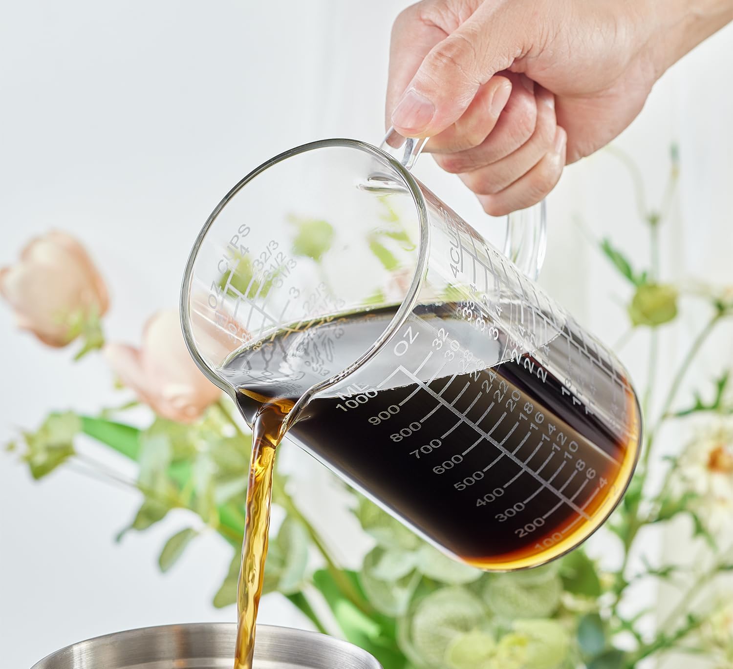 - [Comfortable and Lightweight Design] The high borosilicate glass measuring cup is lightweight, making it easy to handle and reducing the strain on your wrists. This makes it excellent for use in the kitchen, whether you're cooking, making coffee, or baking