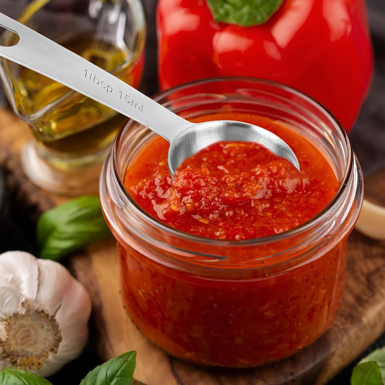 - 【Thoughtful design】Our 1 tsp measuring spoon is thoughtfully designed, combining the essence of the cup-shaped round head design and the long handle design. This allows the small measuring spoons to easily penetrate into spice jars and other small containers, effectively overcoming the problem of spice spillage and spoon storage, bringing you an unprecedented convenient experience