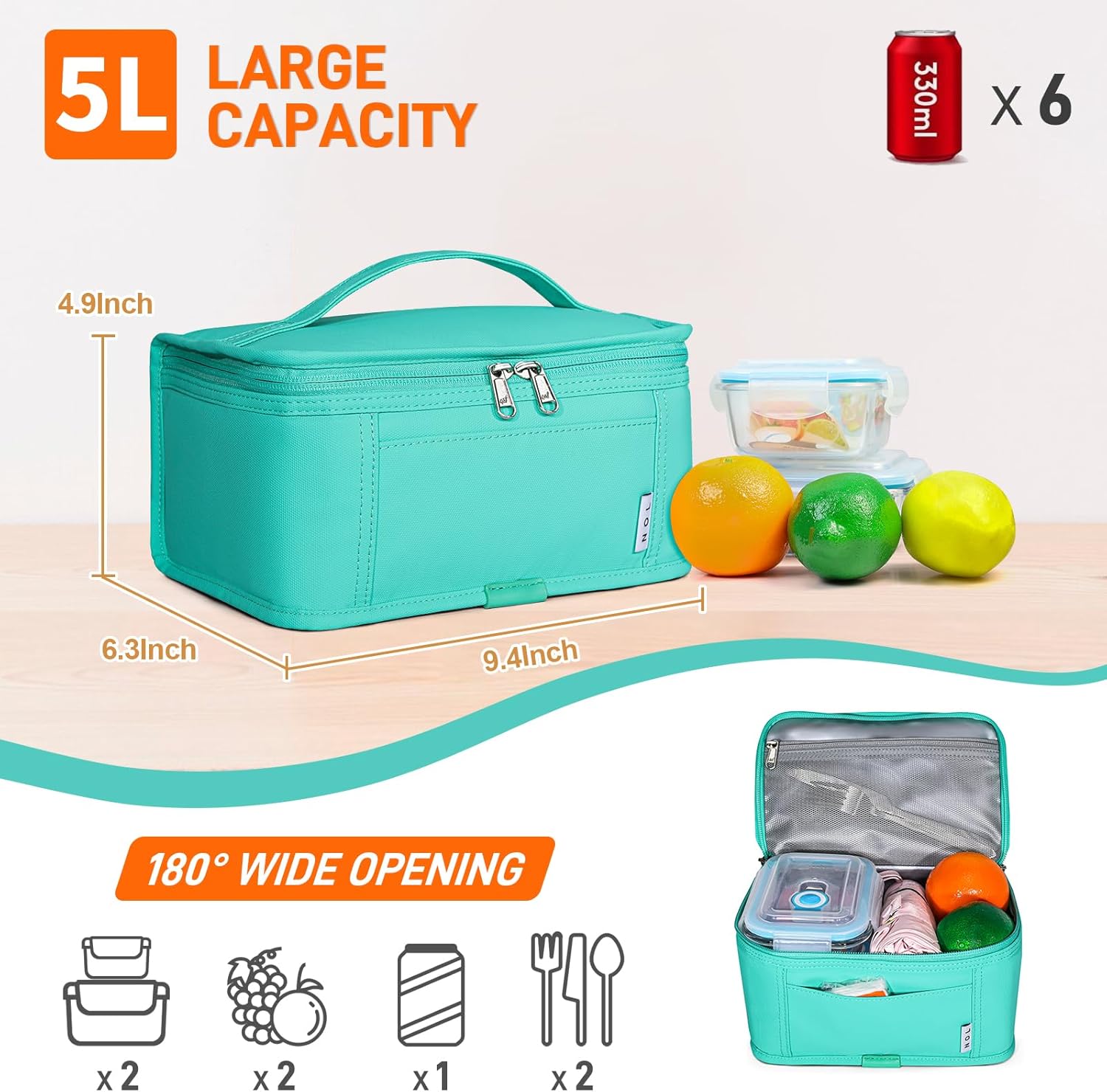- Small Size: This SMALL lunch bag dimensions: 9.4IN x 6.3IN x 4.9IN, which can hold ONE PERSON'S meal. You can put a SMALL lunch box, some snacks, a flatware set and an ice pack or fit 6 cans of 330ml drinks in this mini lunch bag. Mini lunch bag have a soft handle and could easy put into backpack or large handbag. Perfect for work office, travelers. Please don't put ice cubes in lunch bag.
