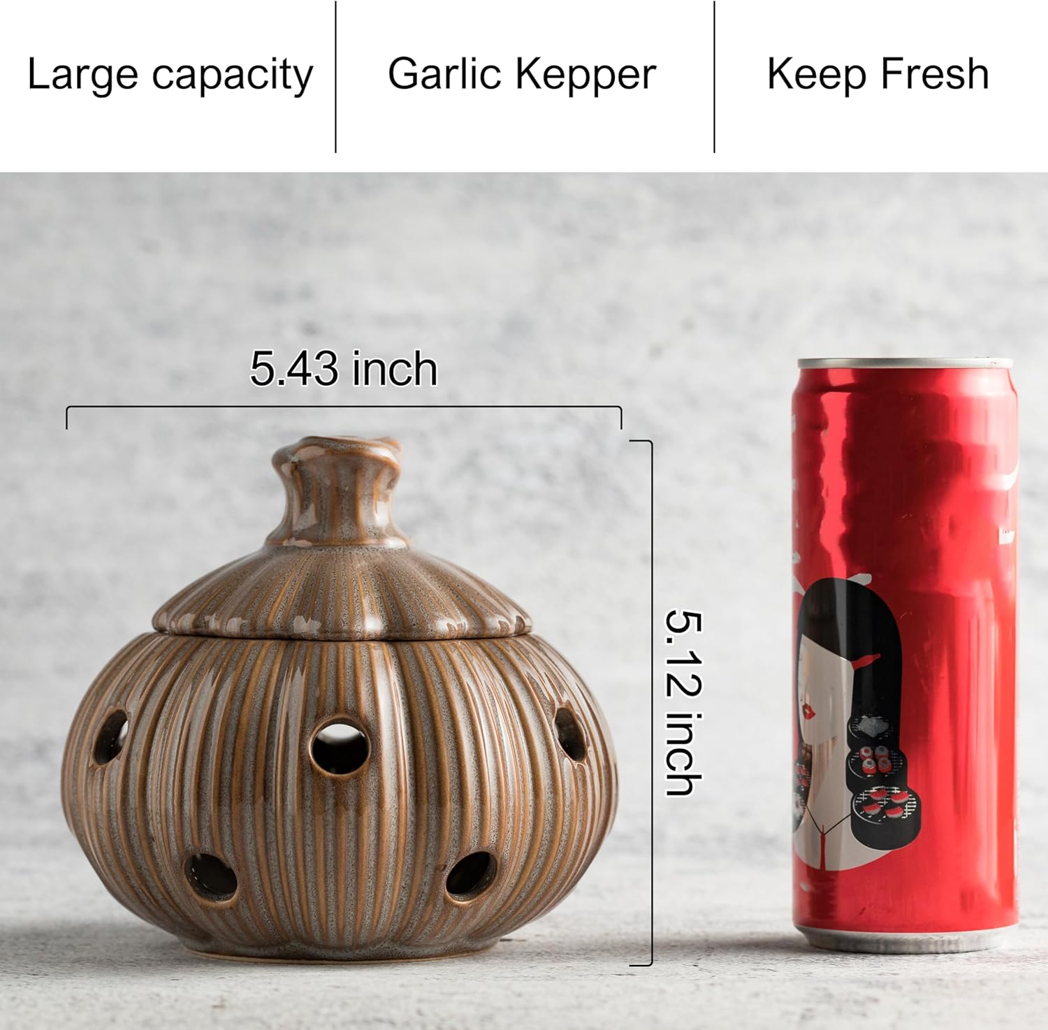 - Keep Garlic Fresh and Dry: The ceramic garlic keeper has twelve vents to maximize air circulation and keep garlic dry. The ceramic lid blocks out light, extending the shelf life of garlic and minimizing sprouting