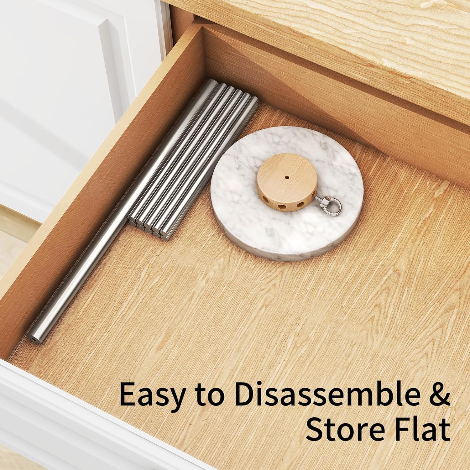 - Compact Design. Takes just 3 minutes to assemble. It can also be quickly taken apart and stored flat when the pasta rack is not in use, taking up no space.