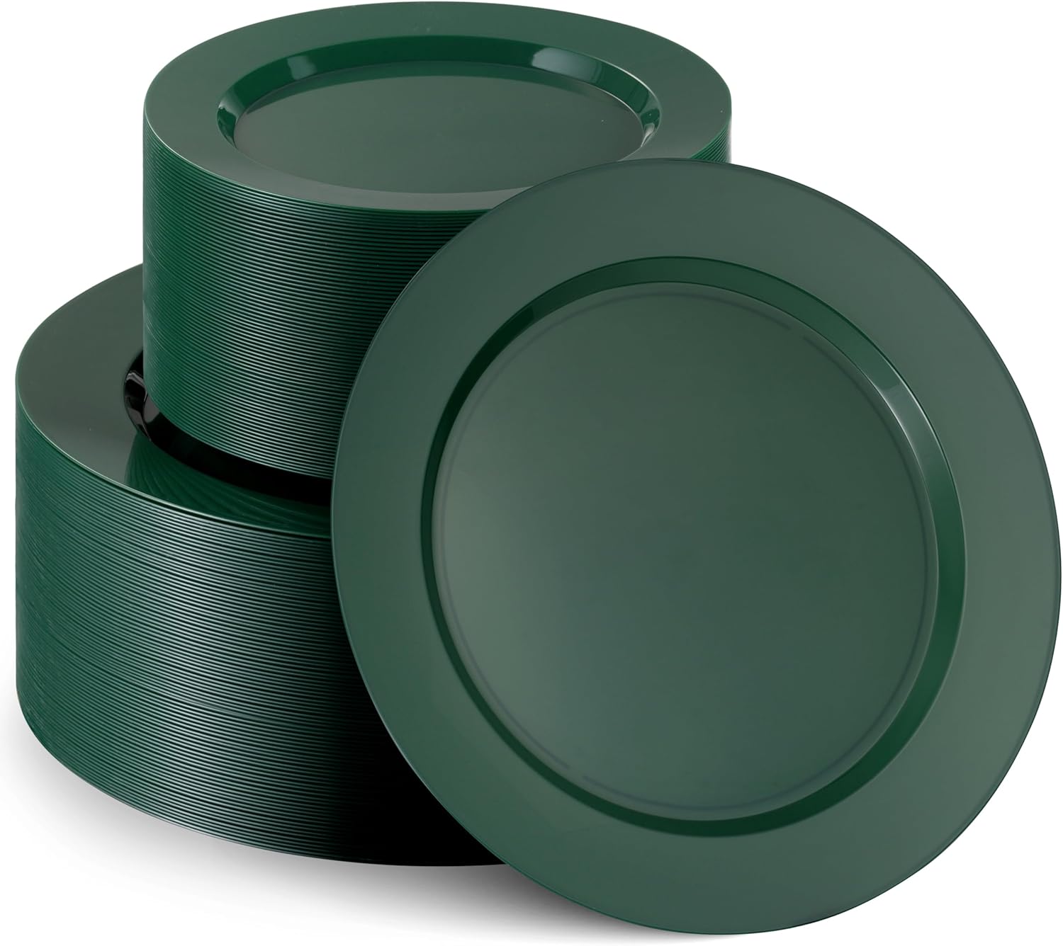 Munfix 100 Green Plastic Plates Set, 50 Pcs 10 Inch Dinner and 50 Pcs 7 Inch Dessert Plates, Elegant Fancy Heavy Duty Disposable Plates for Party, Wedding, Green