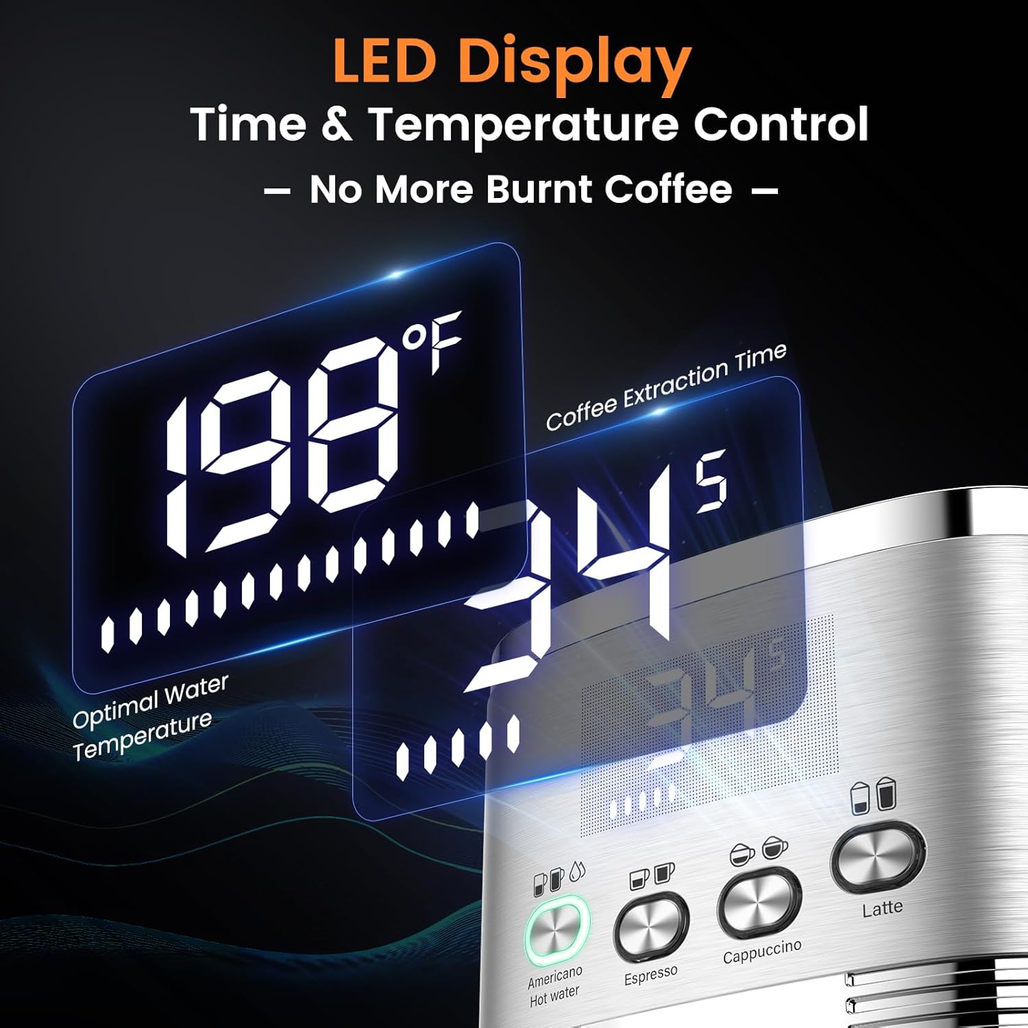 Espresso Machine 20 Bar Cappuccino Latte Machine with Automatic Milk Frother,Temperature Control LED Display StainlessSteel Dual Heat System Coffee Maker with ESE Pod Filter for Home