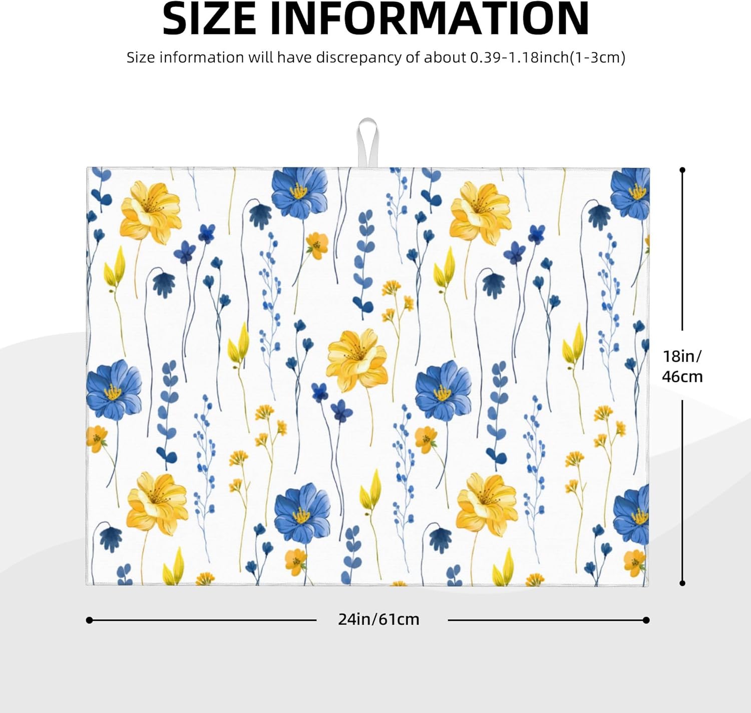 Watercolor Floral Decorative Microfiber Dish Drying Mat for Kitchen Counter 18"x24" Navy Blue Yellow Flower Dishes Pad Dish Drainer Rack Mats Absorbent Washable Reusable