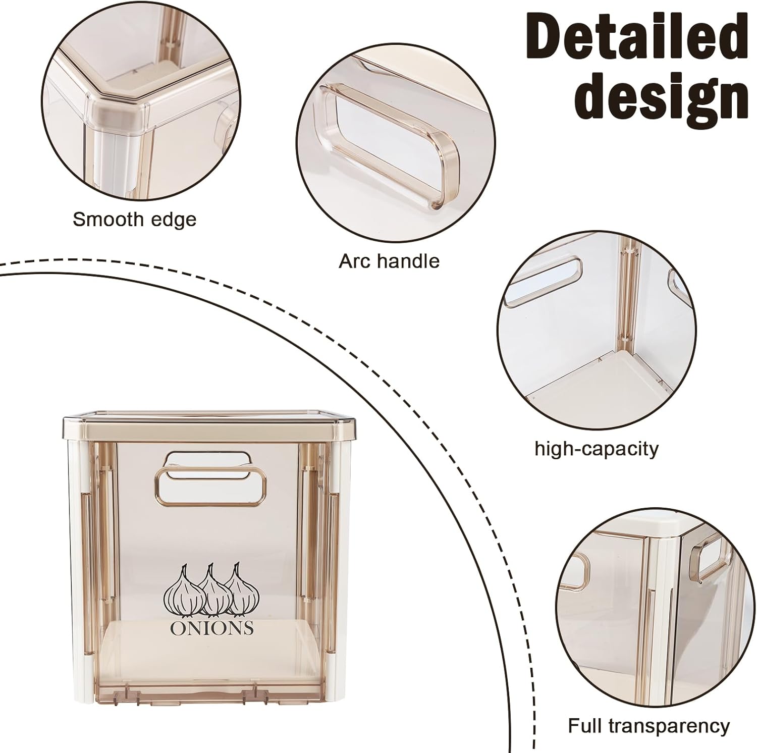 - Practical Design: The onion bins for pantry feature a spacious wide opening, making it convenient to place and accees potatoes and onions. Equipped with side handles for easy movement. The practical design of onion storage makes it a great addition to any home.