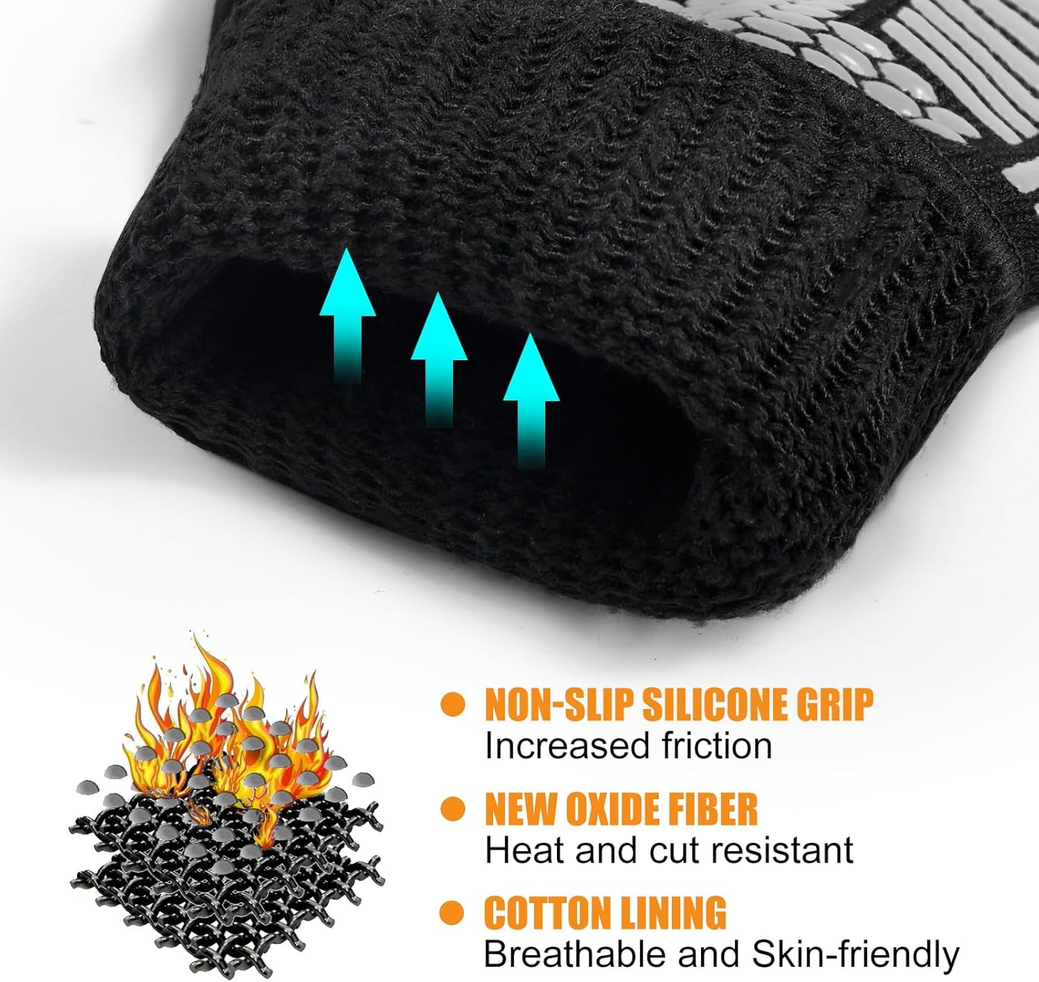 - 【Caution】While the gloves boast extremely high heat resistance and flame retardancy, It's important to note that all heat-resistant materials have their limits.Please avoid direct contact with open flames and prolonged exposure to high temperatures.