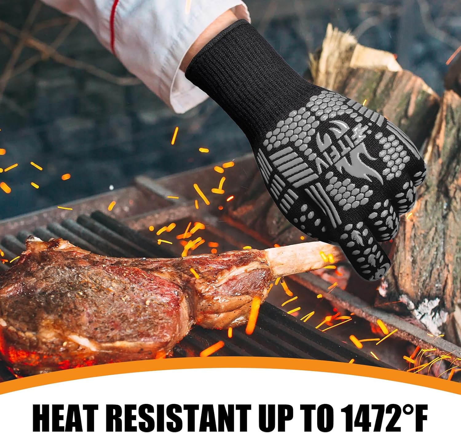 - 【Extreme Heat Resistance】Our barbecue gloves are designed to withstand temperatures up to 1472°F(Test max temperature tolerance), providing perfect protection for your hands from high temperatures whether you're grilling, baking, or cooking.