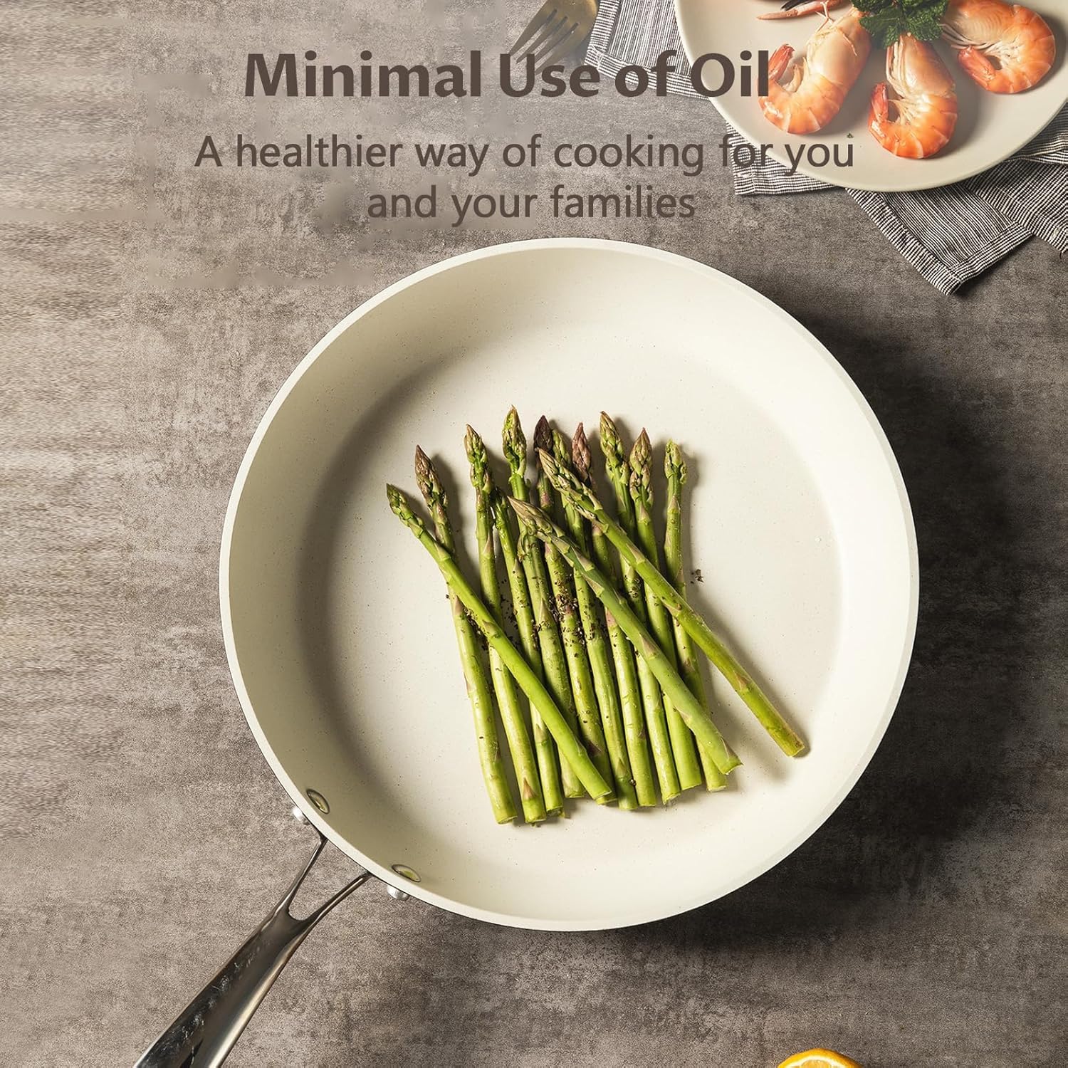 UCC LIFE Nonstick Frying Pan Skillet, Granite Coating Pan, Healthy Stone Cookware Chef's Pan, PFOA Free Compatible with All kitchen Stovetops (8 Inch White)