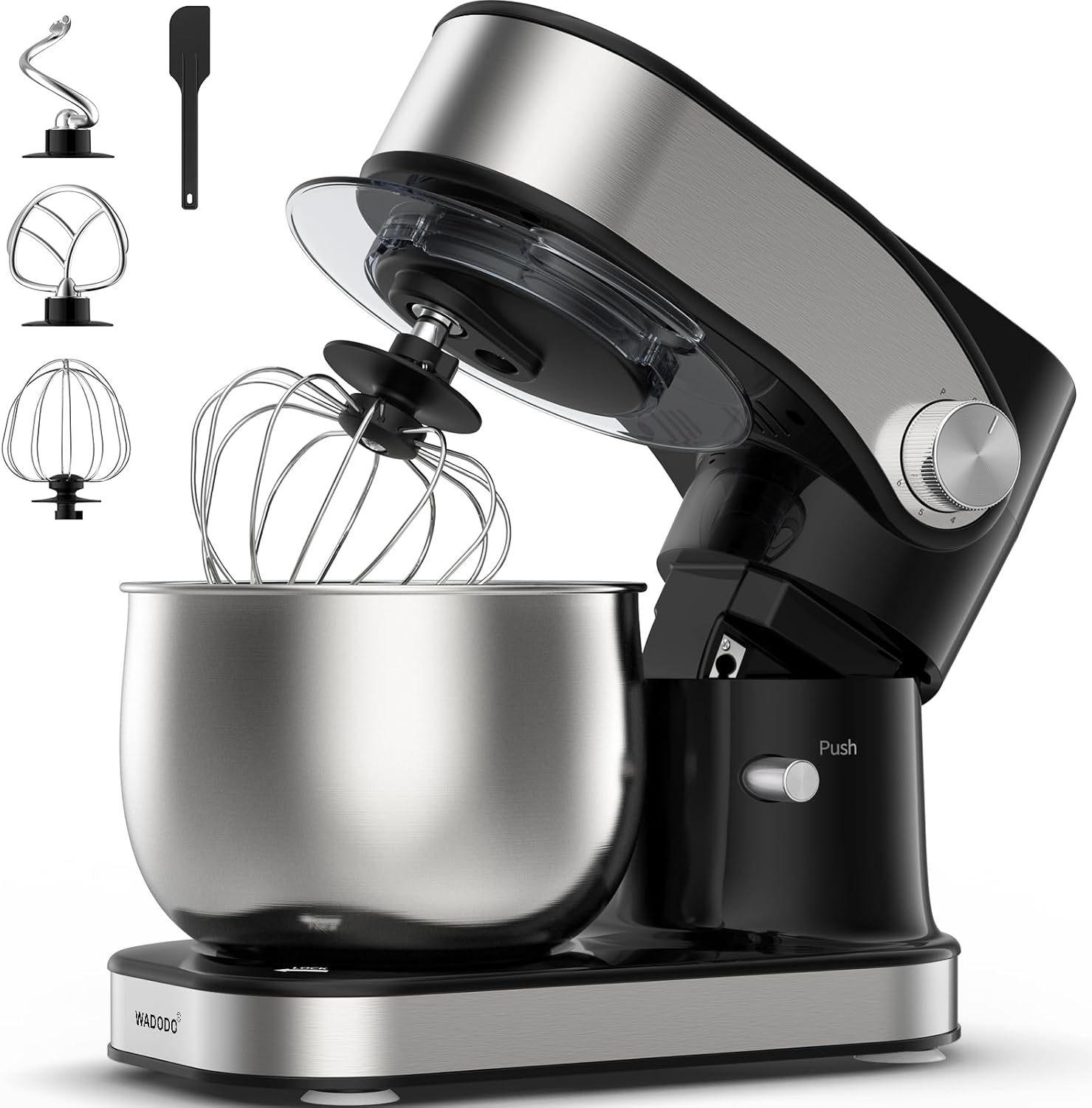 - 【More Healthier & Safer】WADODO Small Stand Mixer (12.1"D x 6.25"W x 10"H) made with 304 food-grade stainless steel bowls and part of the body, heat-resistant, easy to clean, safe for direct food contact, and more sturdy and durable. Our mixer is designed to be compact, which helps save space.