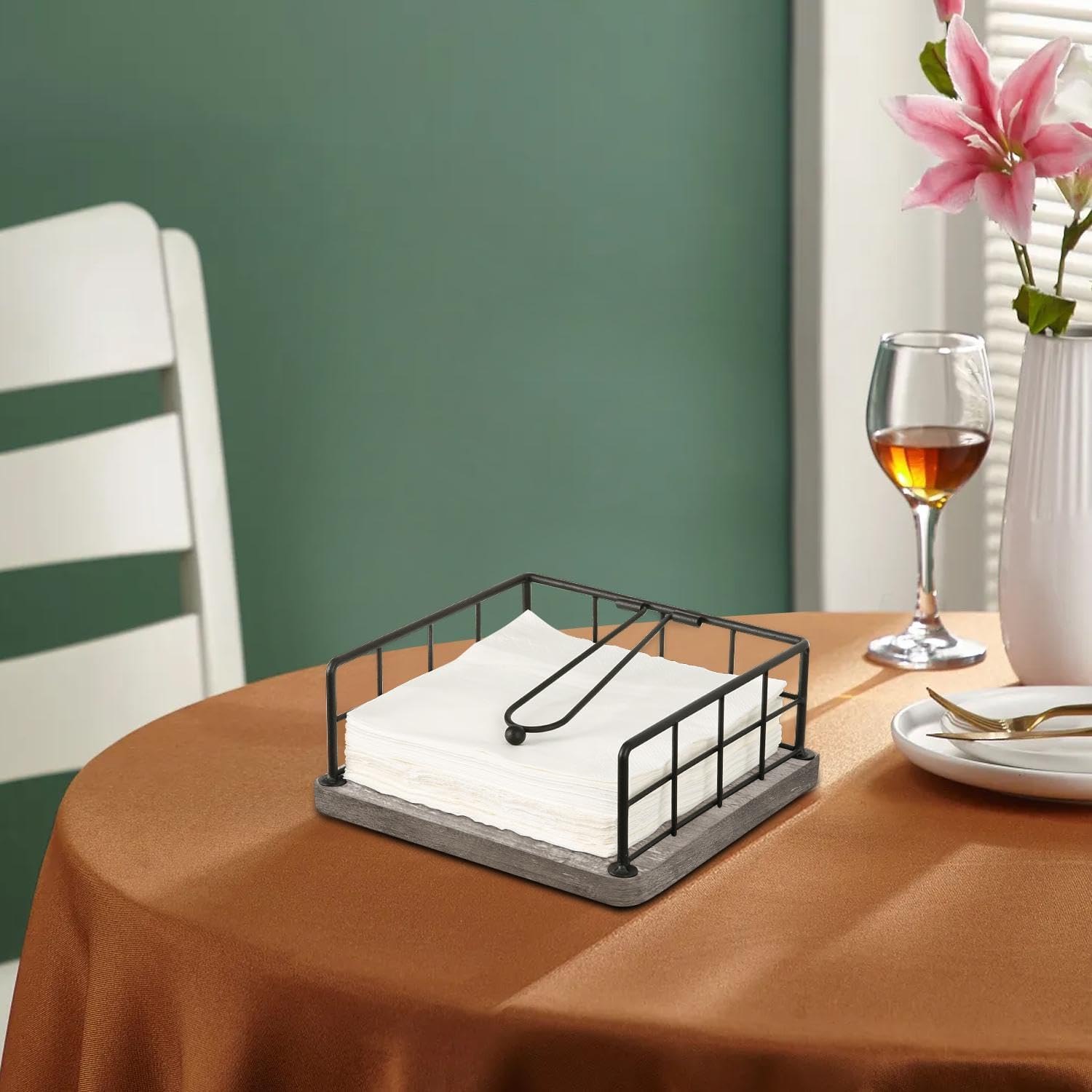 - No Installation Required: The napkin holder dispenser does not require any installation. Open the package and immediately receive an elegant vintage style napkin holder. The black napkin holder has a small square design on all three sides of the frame to ensure that the napkins are neatly and beautifully arranged.
