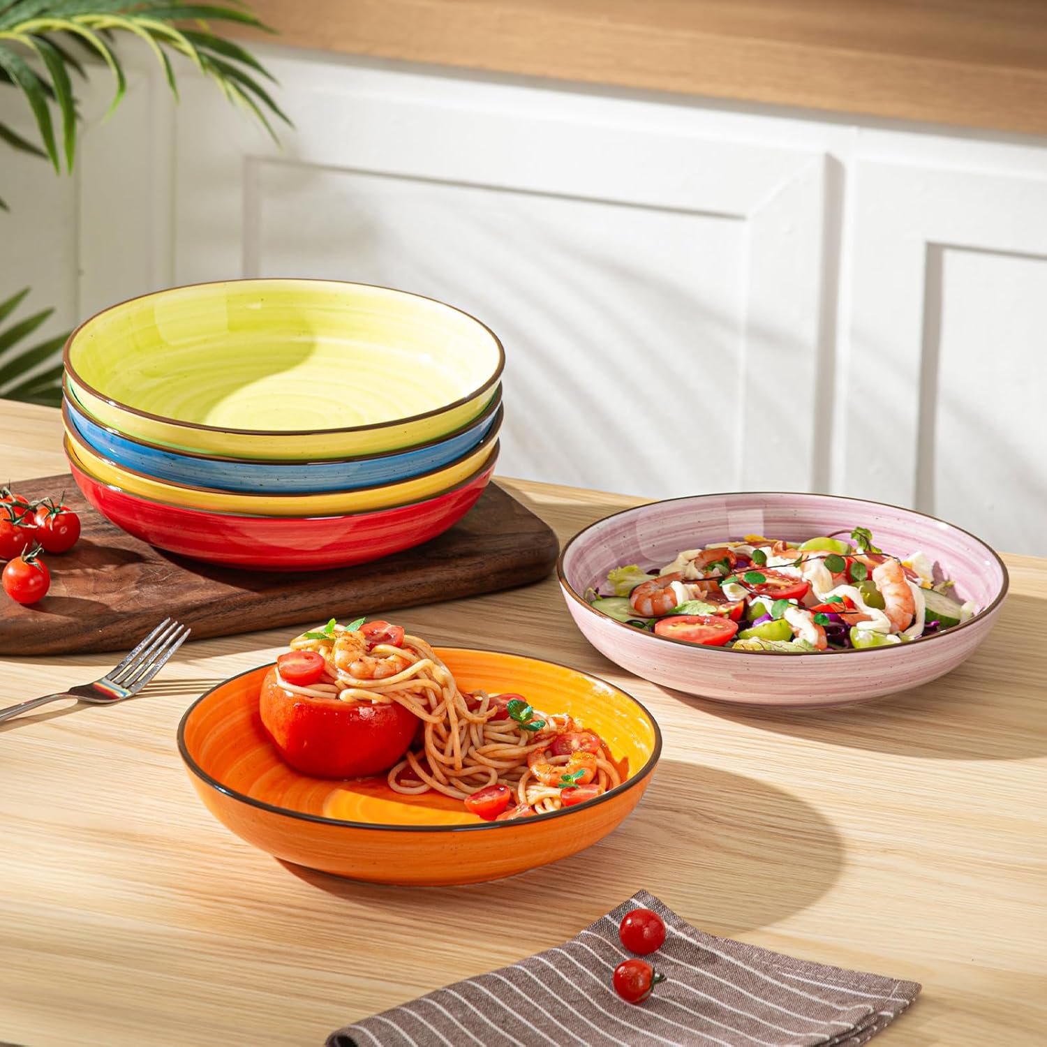 Y YHY Pasta Bowls Set of 6, 30 oz Ceramic Shallow Bowls, Serving Bowls Pasta Plates and Salad Bowls, Microwave & Dishwasher Safe Soup Bowls, Assorted Colors Christmas Day Gift