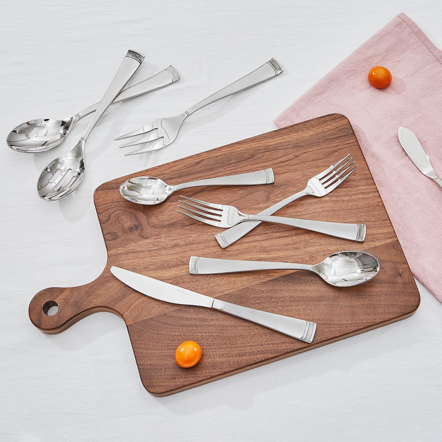- SILVERWARE SET INCLUDES: 65-piece flatware set includes 12 dinner knives (9 inch/2.76 oz), 12 dinner forks (8.14 inch/2.35 oz), 12 dinner spoons (8 inch/2.3 oz), 12 salad forks (6.95 inch/1.68 oz) and 12 teaspoons (6.8 inch/1.9 oz), service for 12