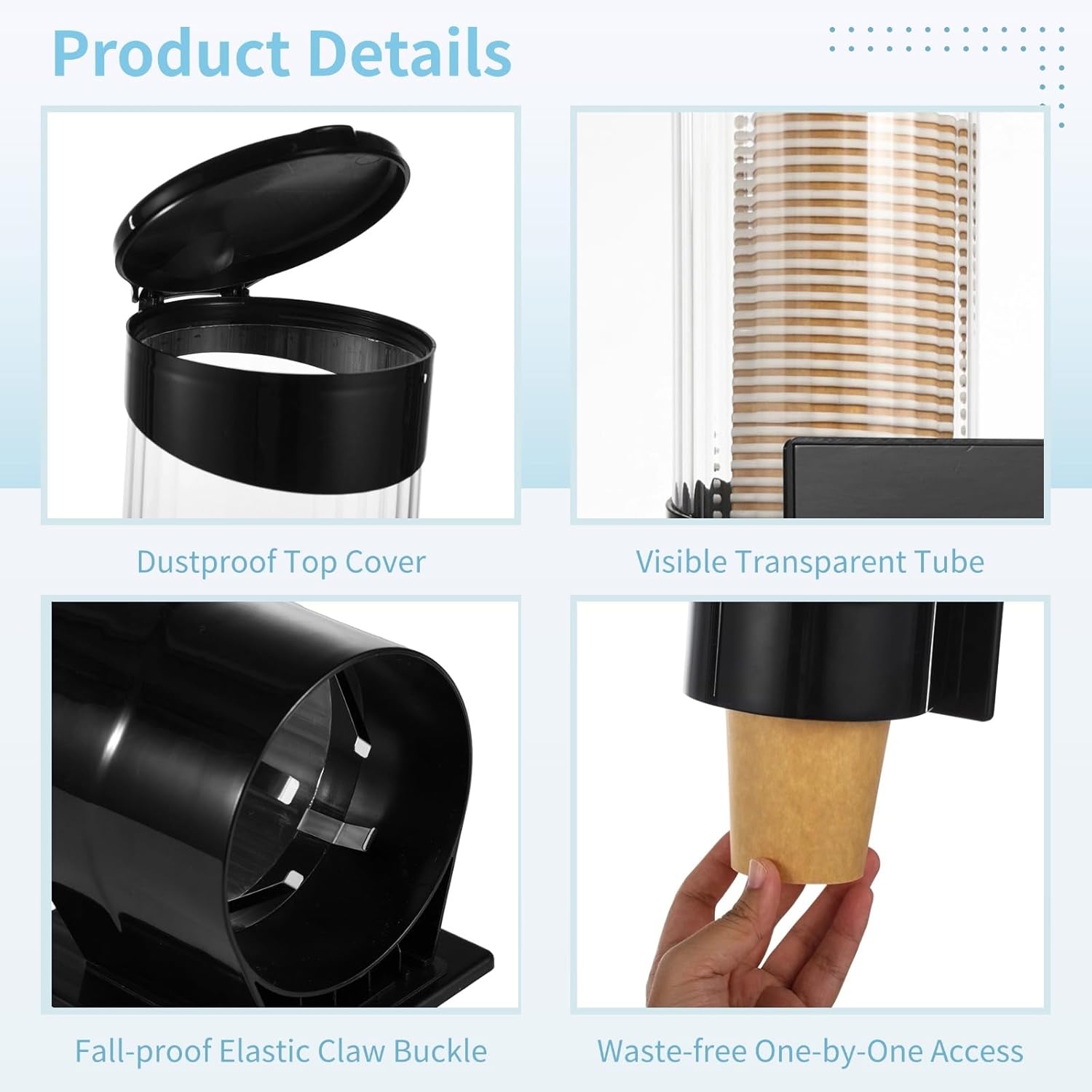 - Spacious Capacity: Measuring 3.9×16.9 inches, our cup dispenser can hold 60-80 disposable 7 oz-12 oz cups at once, preventing frequent refills; it fits cups with diameters of 2.96-3.54 inches; please check the dimensions before purchasing for proper fit