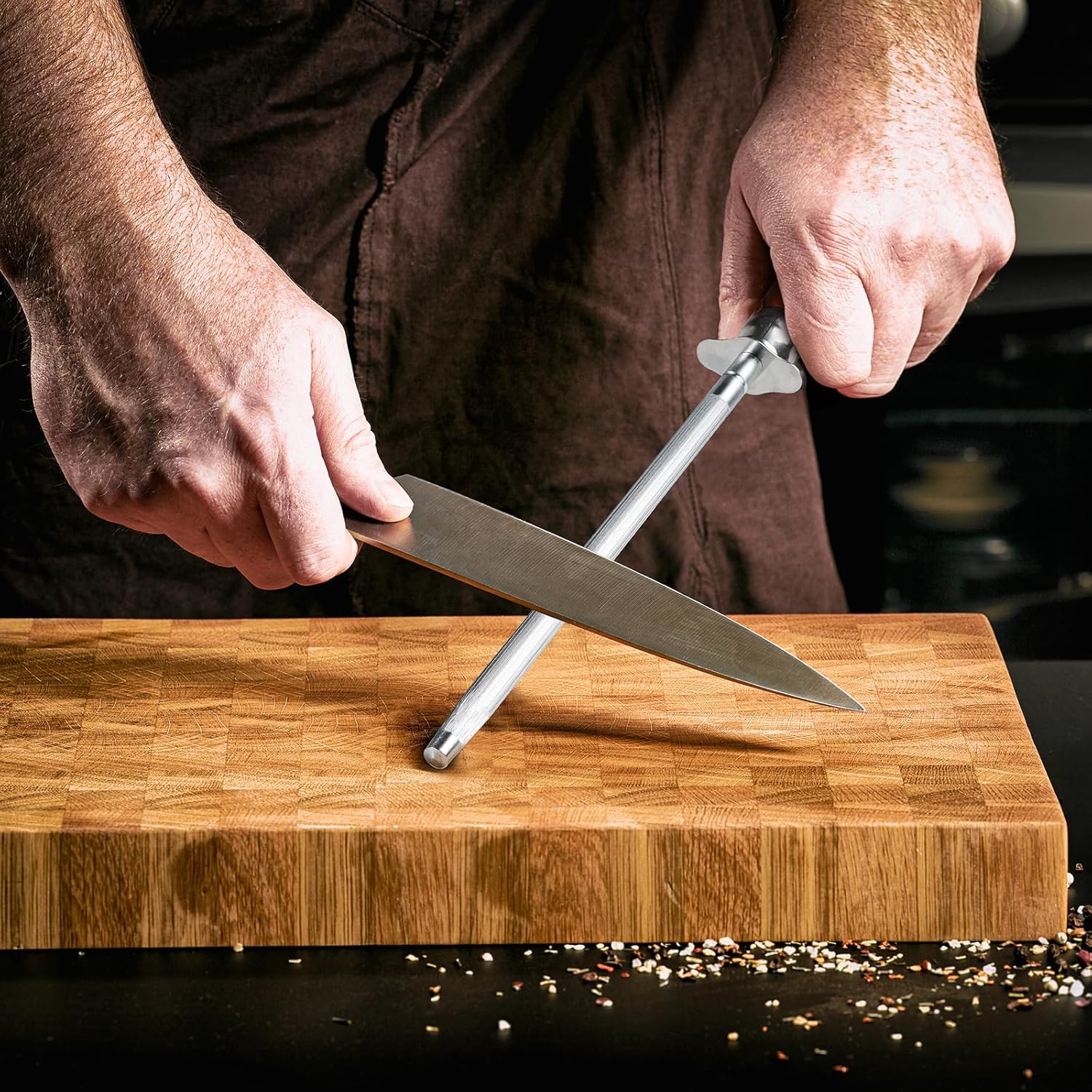 Knife Sharpener Rod, Kitchen Knives Sharpener Carbon Steel Professional Knife Sharpening Steel, Honing Rod with Hanging Holes (13 inches), J