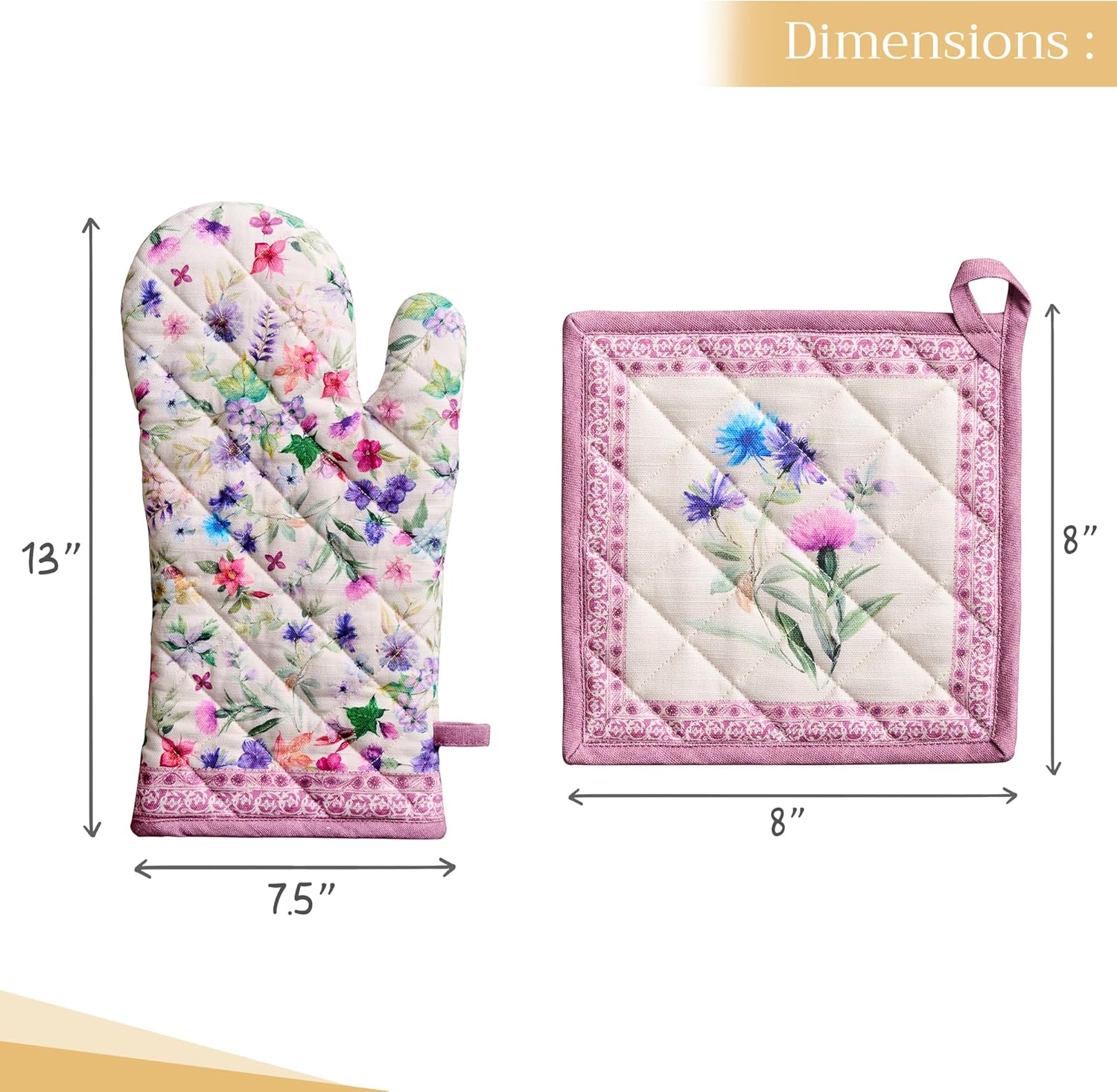 - Artistic style: Add charm to your kitchen with our oven mitt pot holder set featuring watercolor designs inspired by traditional European motifs. Stylish and functional kitchen accessories for every home cook or gift occasion.