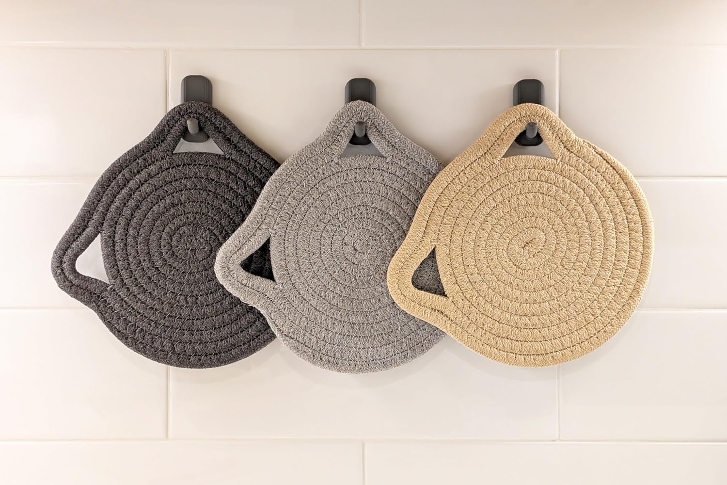 - Versatile: The trivets can be used as a base for dishes, pots, pans, plants, and more. Stack them up for storage, or hang them up with the built in cat ears.