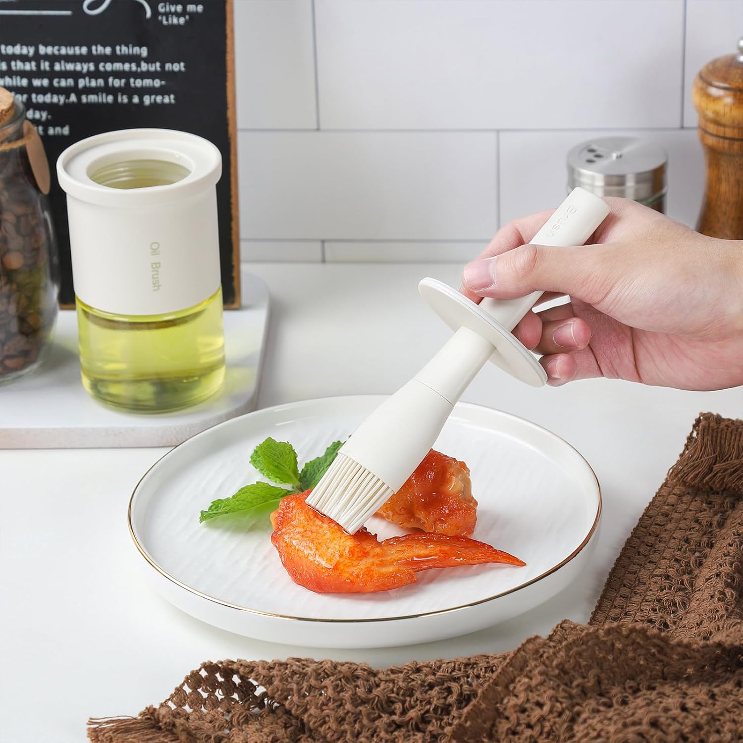 - Precise oil control design - This oil dispenser with brush has provided an edge to scrape the brush against, is great at keeping the oil drippings to a minimum, and can accurately control the amount of oil used with this silicone brush. And there is a silicone ring at the mouth of the bottle, which keeps the container securely closed to keep the content inside clean and fresh, but also allows this oil bottle with brush to be opened easily when needed.