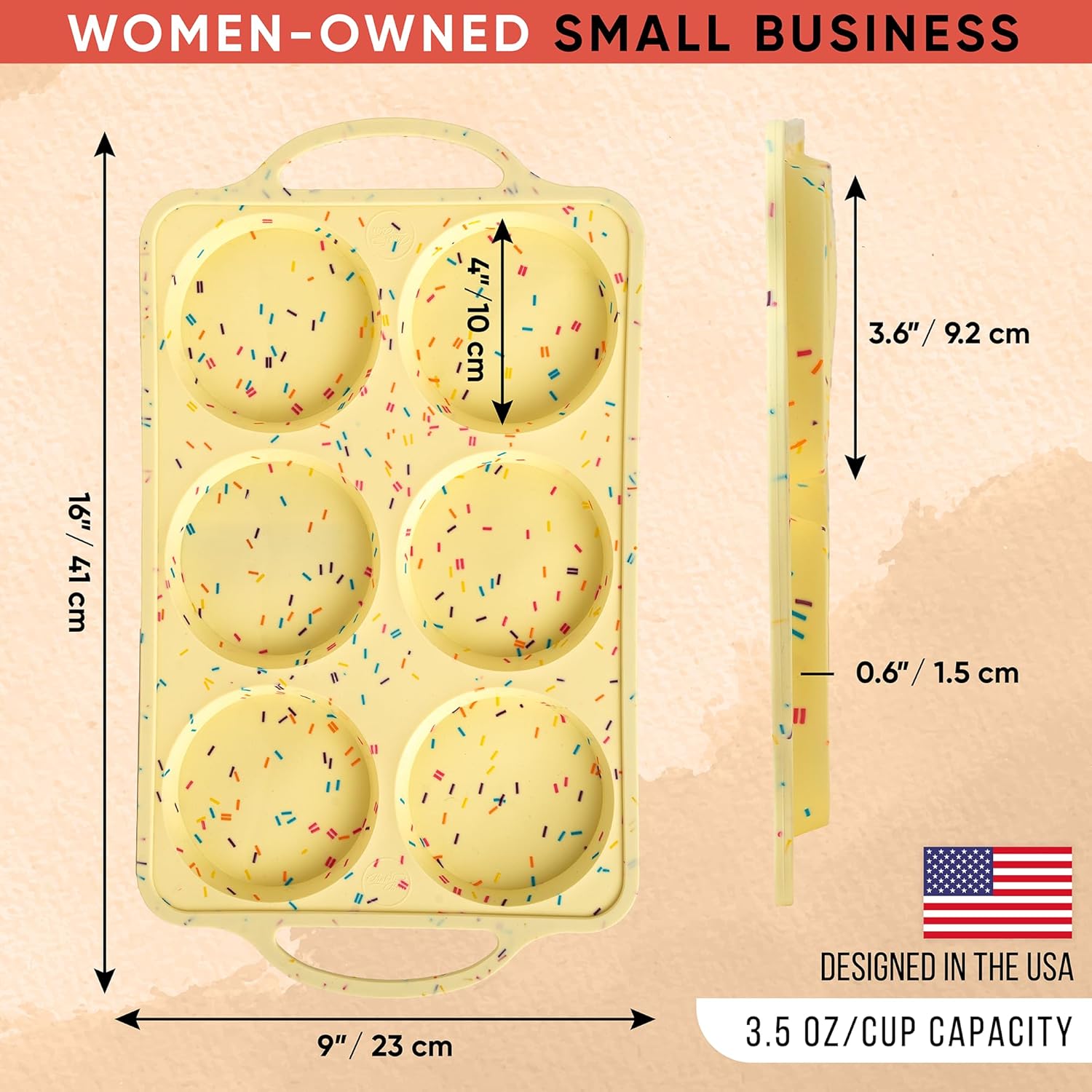 - JUMBO SIZE FOR BIGGER BAKES – Each silicone jumbo muffin pan has 6 cup capacity with a wide 4" diameter – perfect for those thick extra large muffin pan or jumbo cupcake pans recipes. Great for making whoopie pies, burger buns, and muffin tops that truly rise.