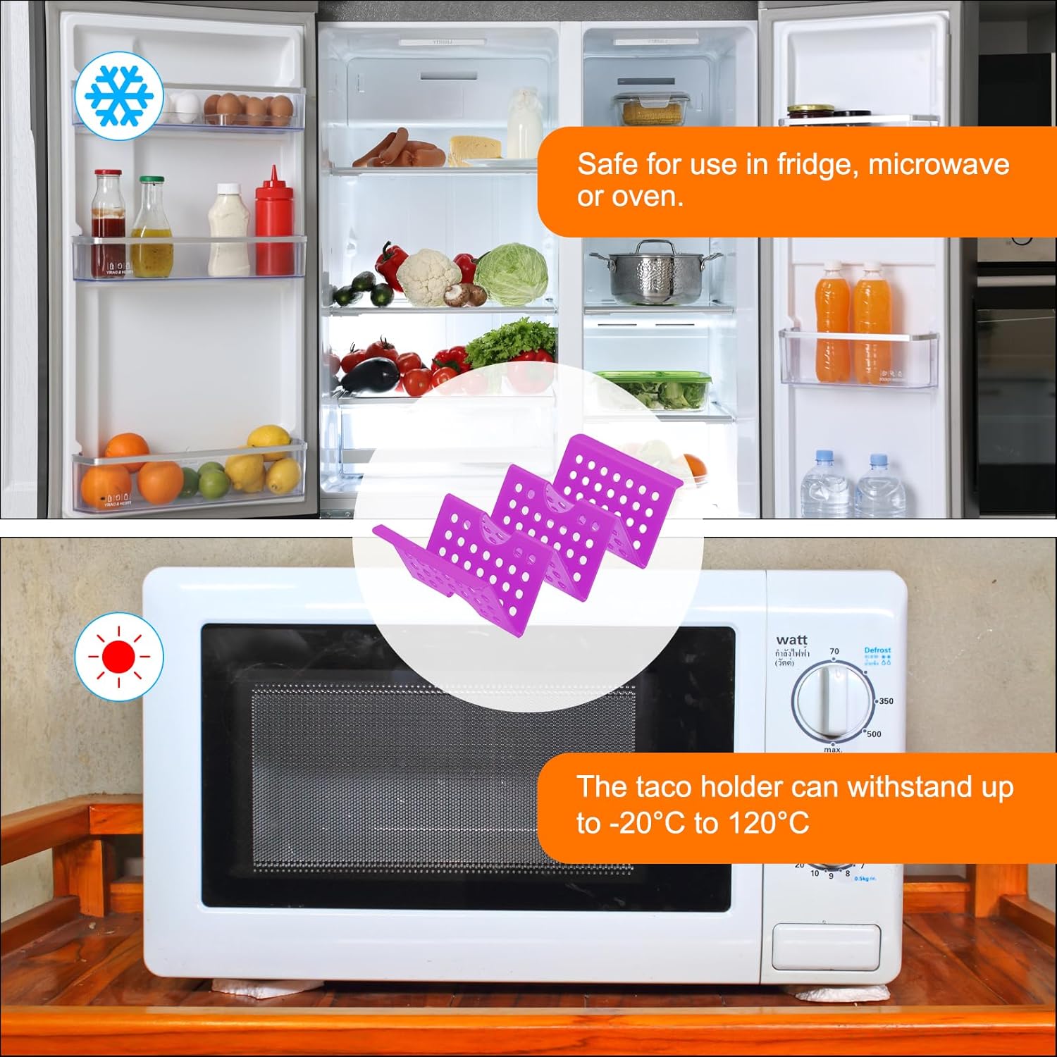- [Design] - Small holes even distribution on taco stands make taco heat up evenly. The curved design prevents the taco from getting wet or falling off.